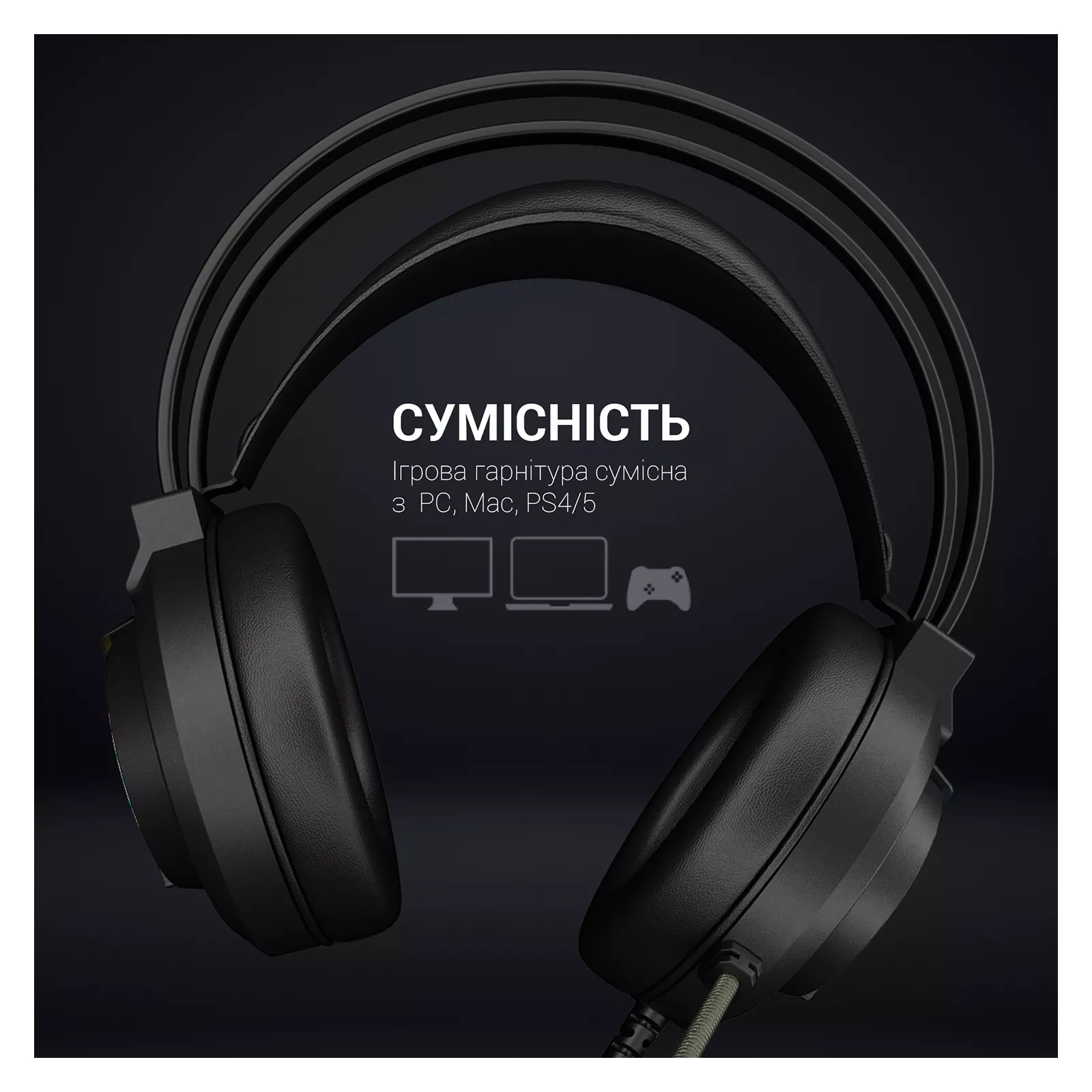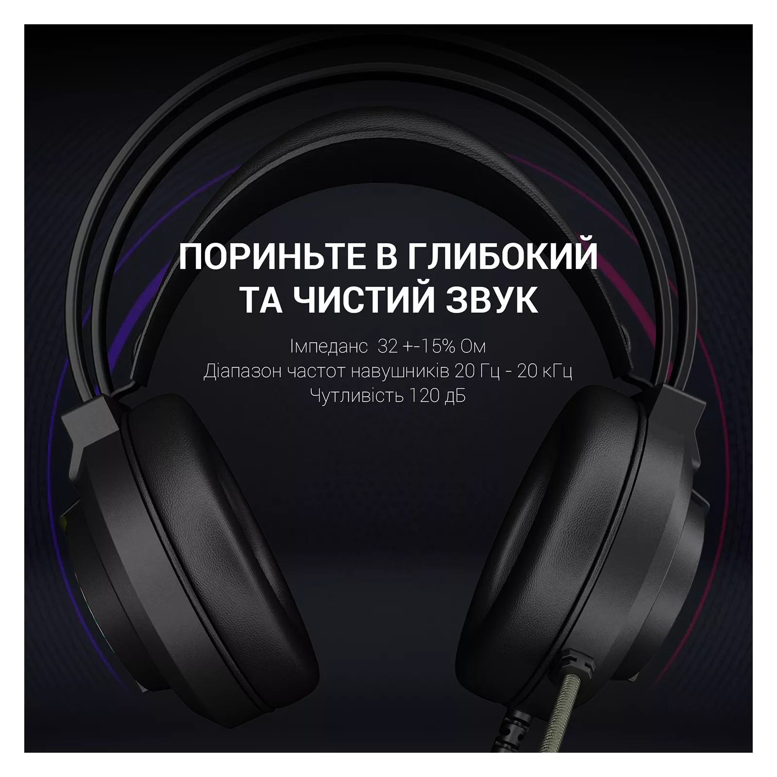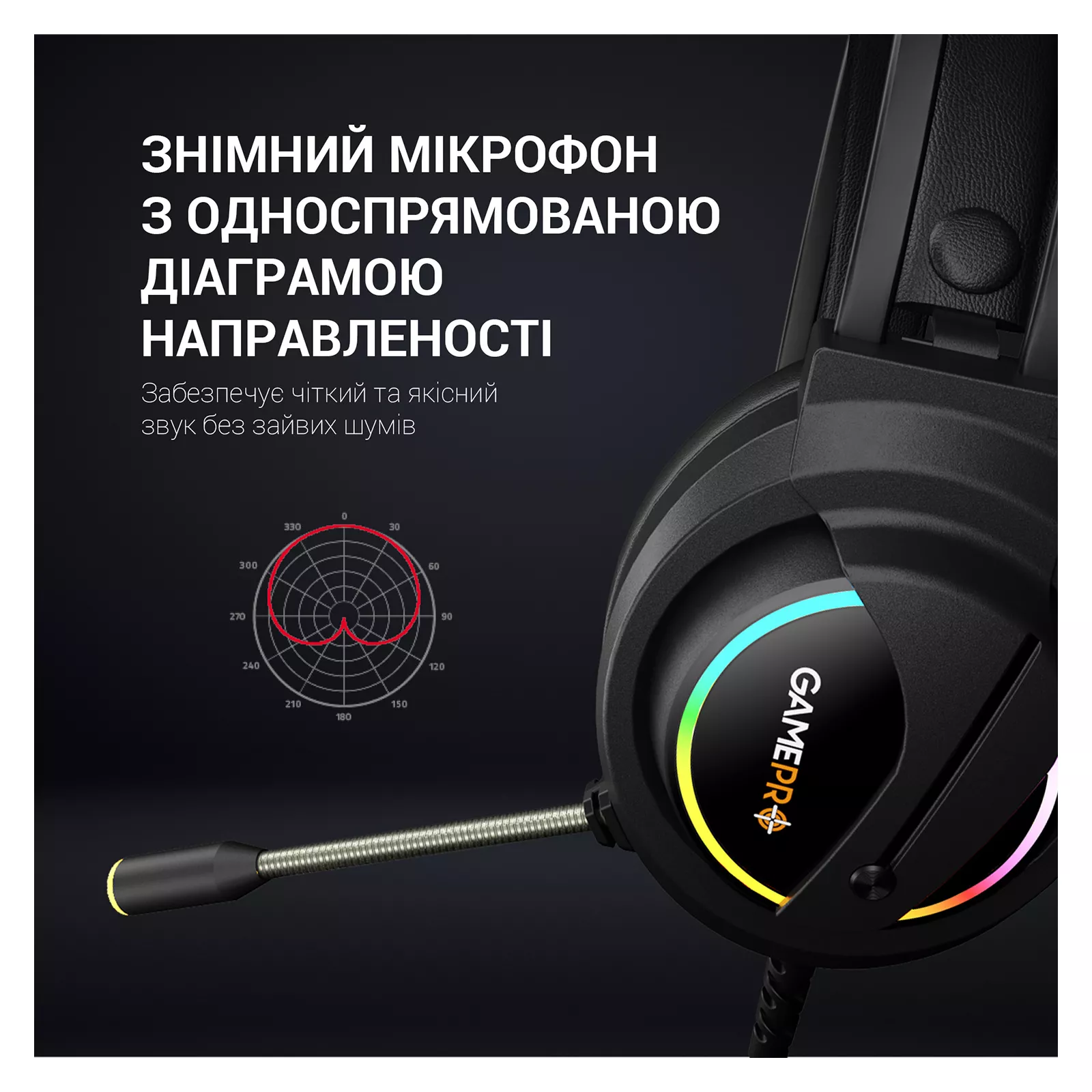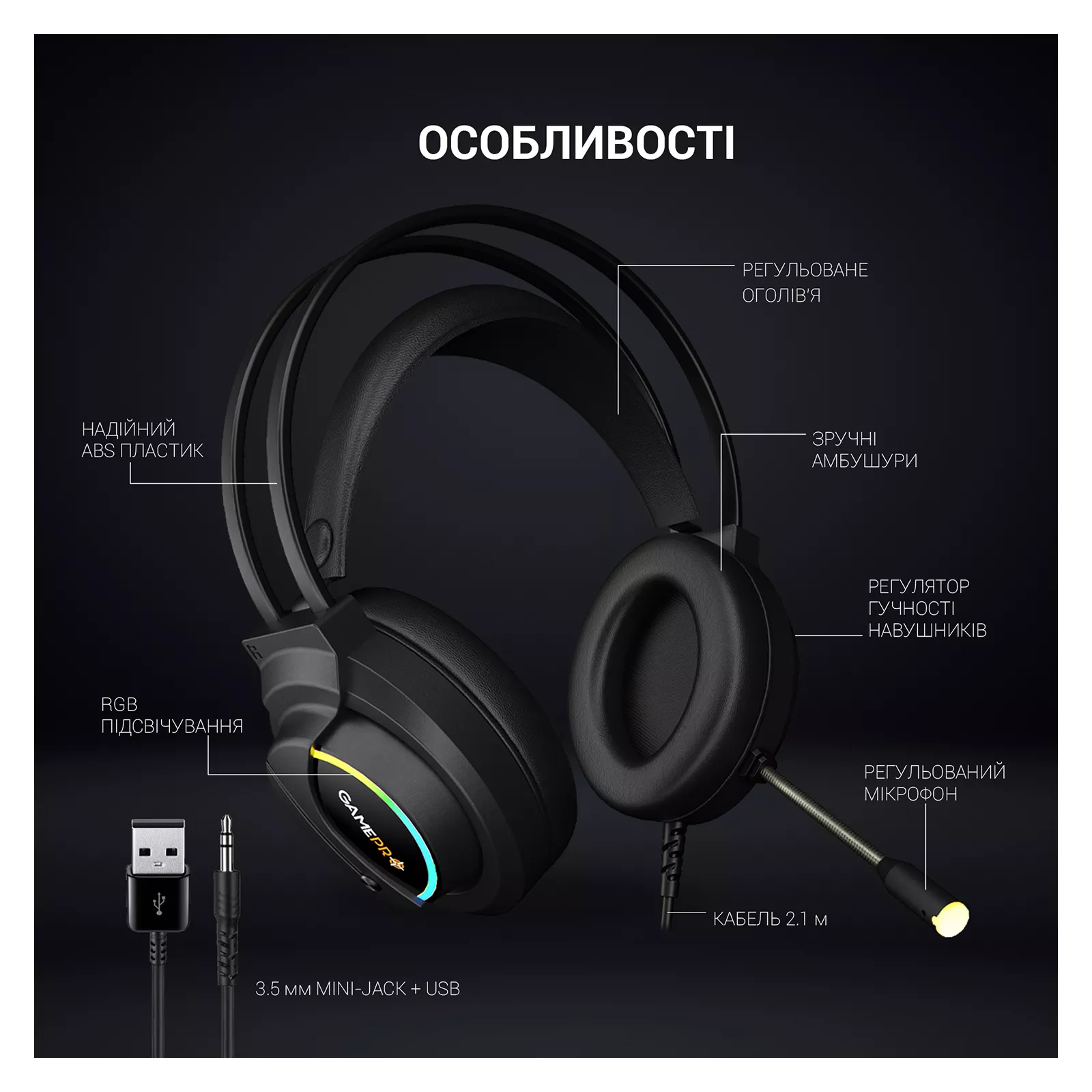 GamePro Headshot HS565 - полноразмерная геймерская гарнитура, которая поможет максимально и в полном объеме погрузиться в виртуальные игровые сюжеты. Аксессуар обрадует высоким качеством воспроизведения звука, чувствительным микрофоном для голосового общения и эргономичным форм-фактором. А стильный корпус со светодиодной подсветкой добавляет устройству элегантности. Особенности: Широкий диапазон частот - от 20 до 20 000 Гц