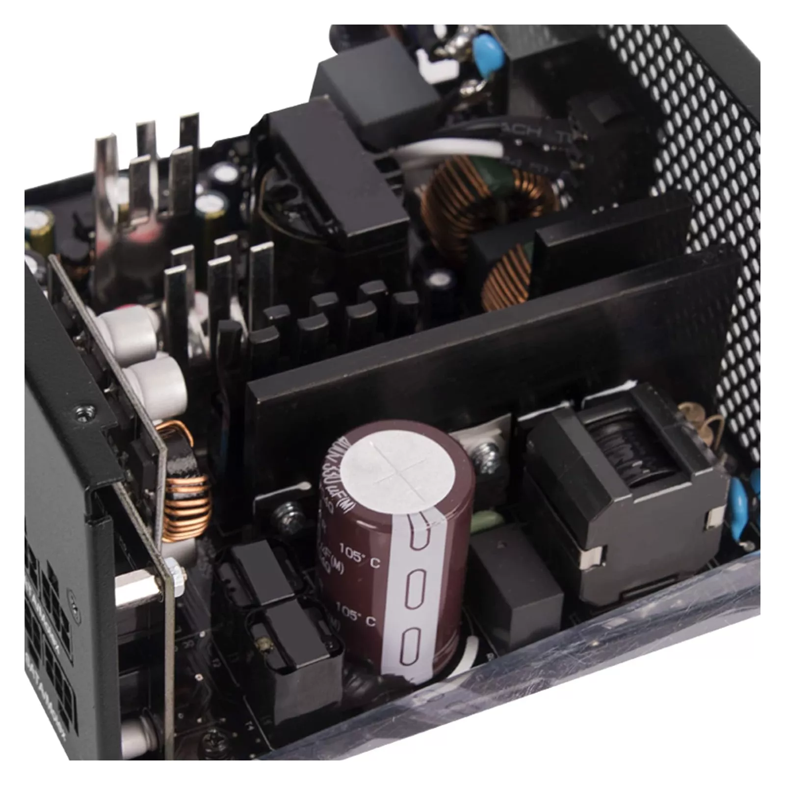 Охлаждение обеспечивает бесшумный 120-миллиметровый вентилятор FDB с усовершенствованным режимом работы. Он создаст мощный воздушный поток, отличную циркуляцию и охлаждение компонента при низком уровне шума 18 дБА. Специально разработанная крышка, предназначенная для эффективного рассеивания остаточного тепла. Особенности: Высокая эффективность благодаря сертификации 80 PLUS Gold;