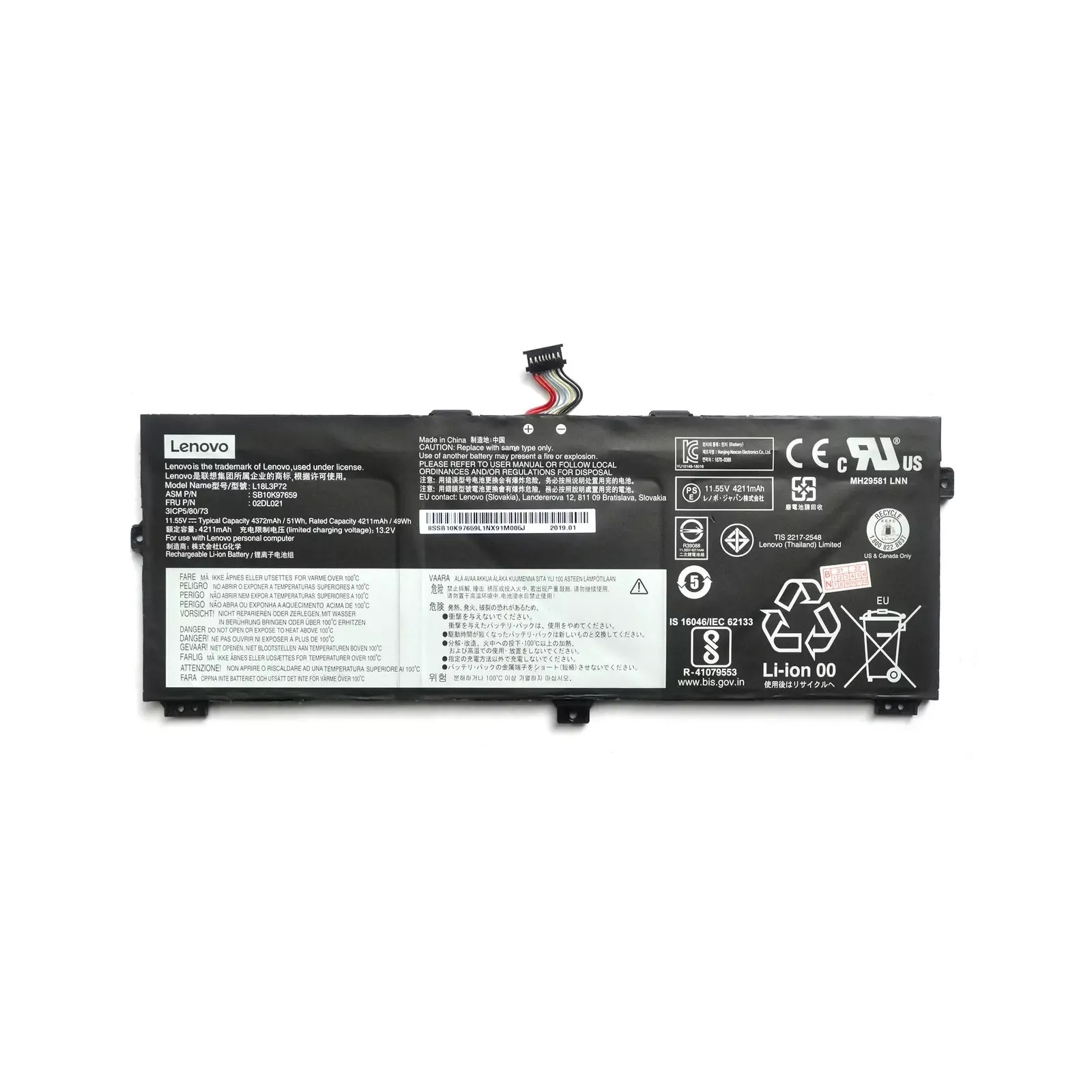 | P/N совместимых аккумуляторов | L18L3P72 |