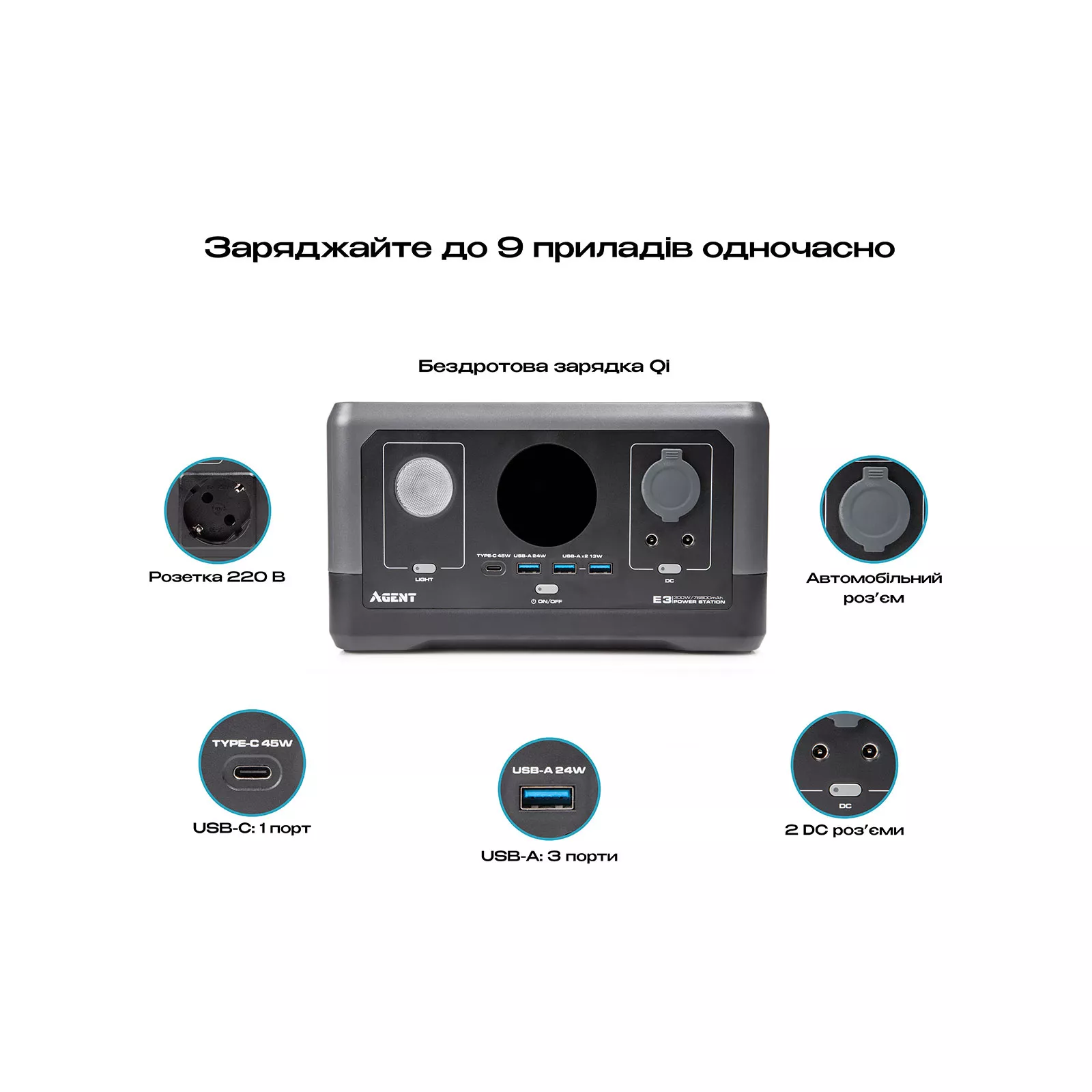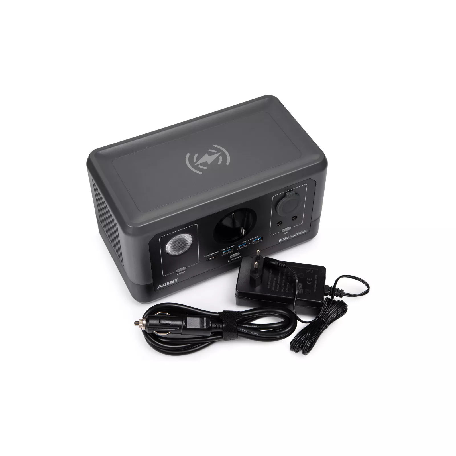AGENT E3 – это новая электростанция для зарядки приборов с возможностью питания от солнечной батареи и функцией беспроводной зарядки. Создайте свой собственный портативный минигенератор у себя дома или на природе! Удобная, компактная и легкая зарядная станция E3 от AGENT подойдет как для домашнего использования, так и для коротких поездок, но хочется быть уверенным в возможности подзарядить устройства.