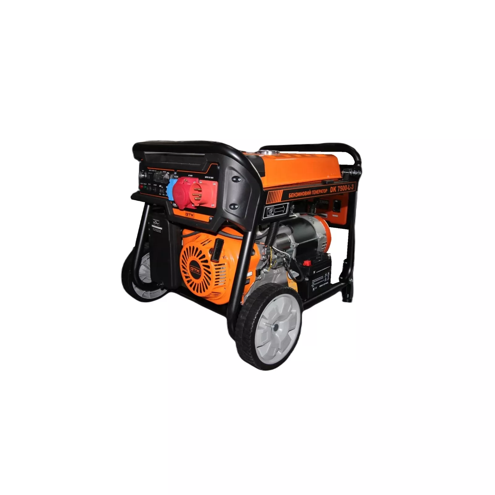 GTM DK7500-L-3 – 3-фазный бензиновый электрогенератор для обеспечения питания оборудования при отсутствии электроэнергии. оснащен и укомплектован 4-х тактным двигателем DK192F, отличающимся экономичностью, низким уровнем выбросов и шума. Максимальная мощность выхода генератора при 3-фазном подключении составляет 7,5 кВт. Идеальный вариант для использования в бытовых условиях, на даче или в небольших магазинах. При работе полного бака топлива объемом 25 л хватит до 7 часов при 100% нагрузке. Встроенный АВР позволяет настроить автоматическое включение генератора при отключении сети.