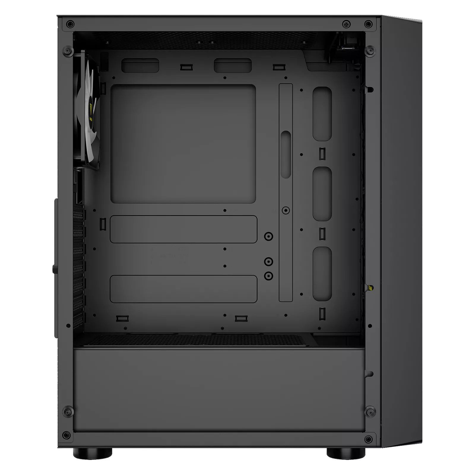 Корпус оснащен и укомплектован тремя вентиляторами RGB. -мм радиатором спереди и 120-мм радиатором охлаждения на задней панели. Входы/выходы расположены в верхней части передней панели корпуса. : 2 порта USB, 1 порт USB 3.0, кнопка сброса и дополнительные аудиоразъемы.