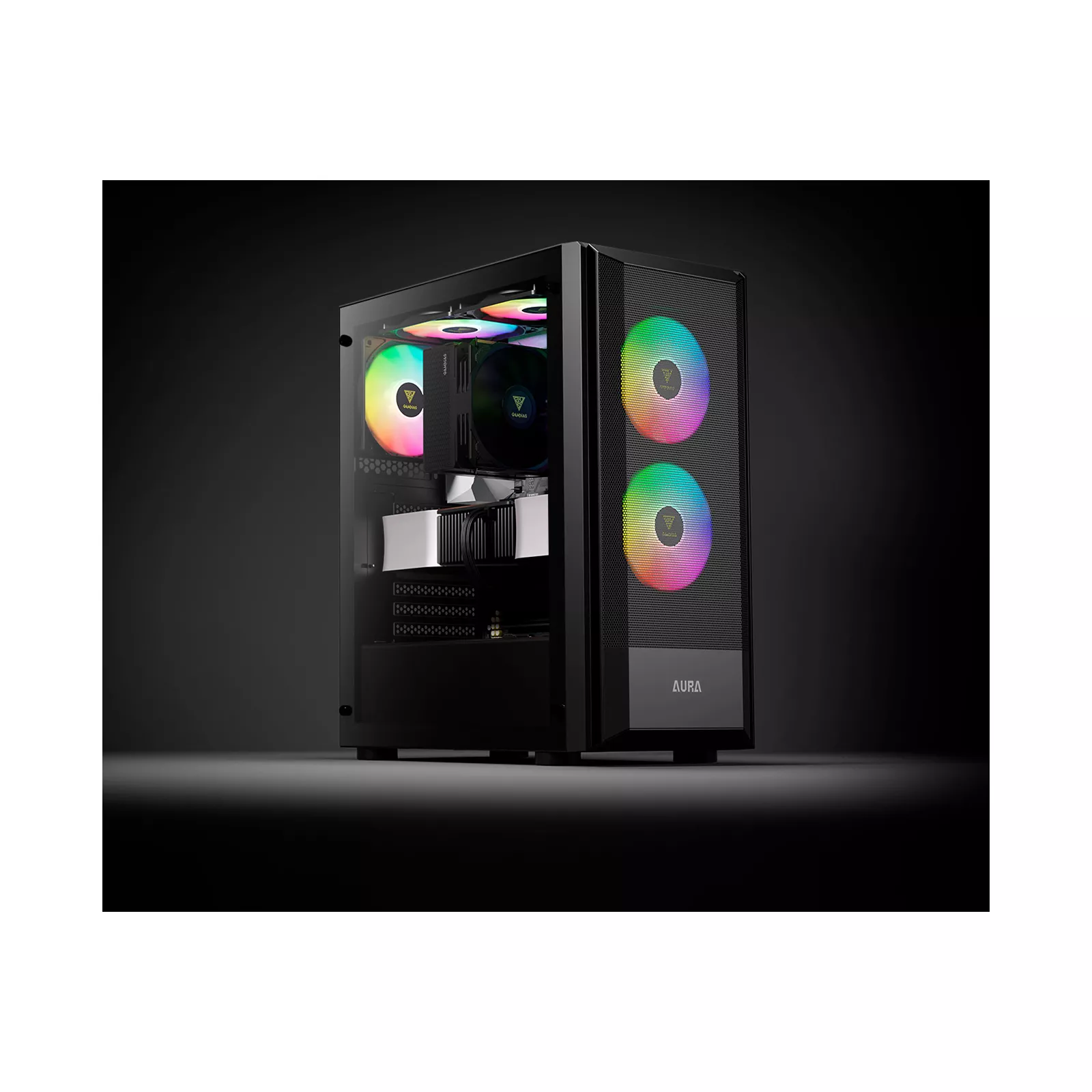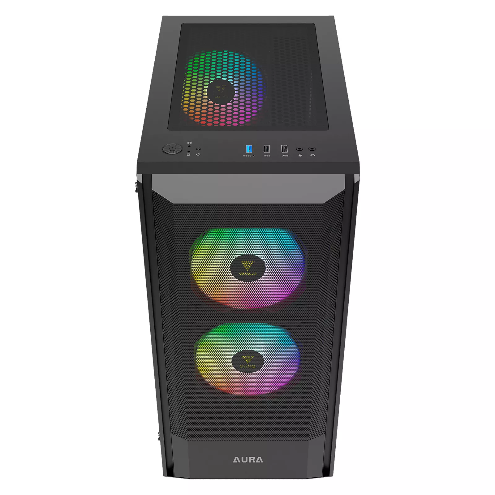 Aura GC6 Black поставляется с элегантной мелкоячеистой передней панелью, оснащен и укомплектованной тремя установленными белыми RGB-вентиляторами для обеспечения эффективного воздушного потока по всему корпусу.