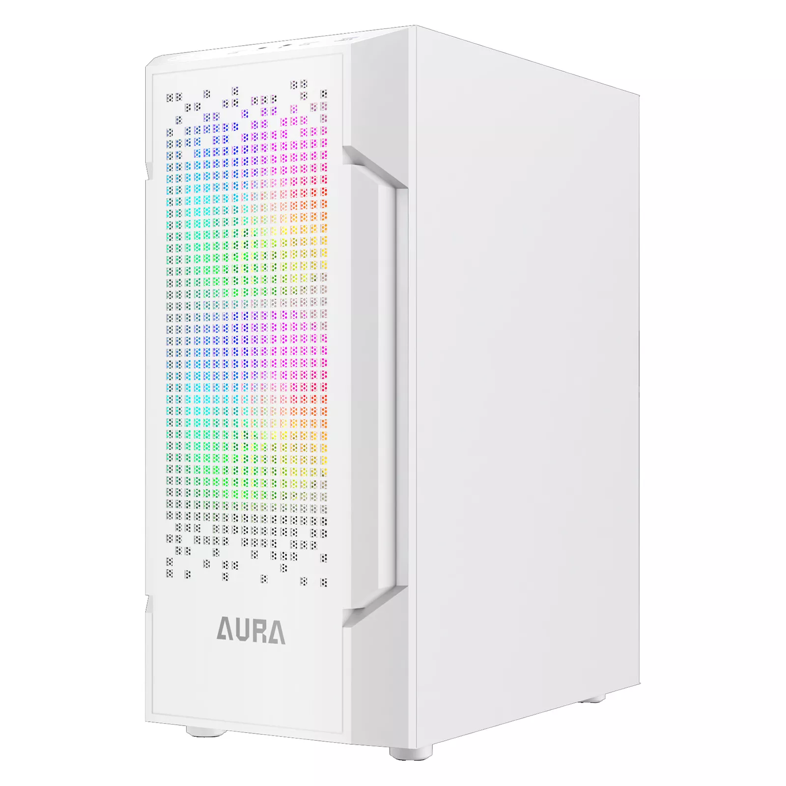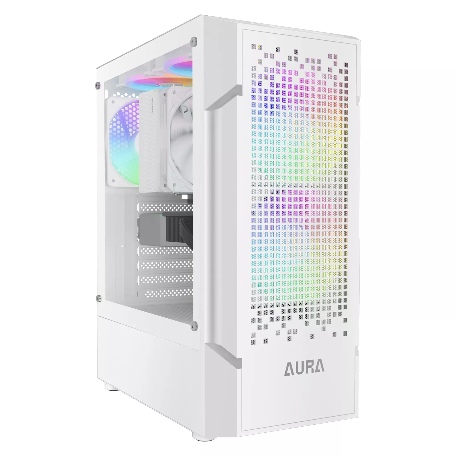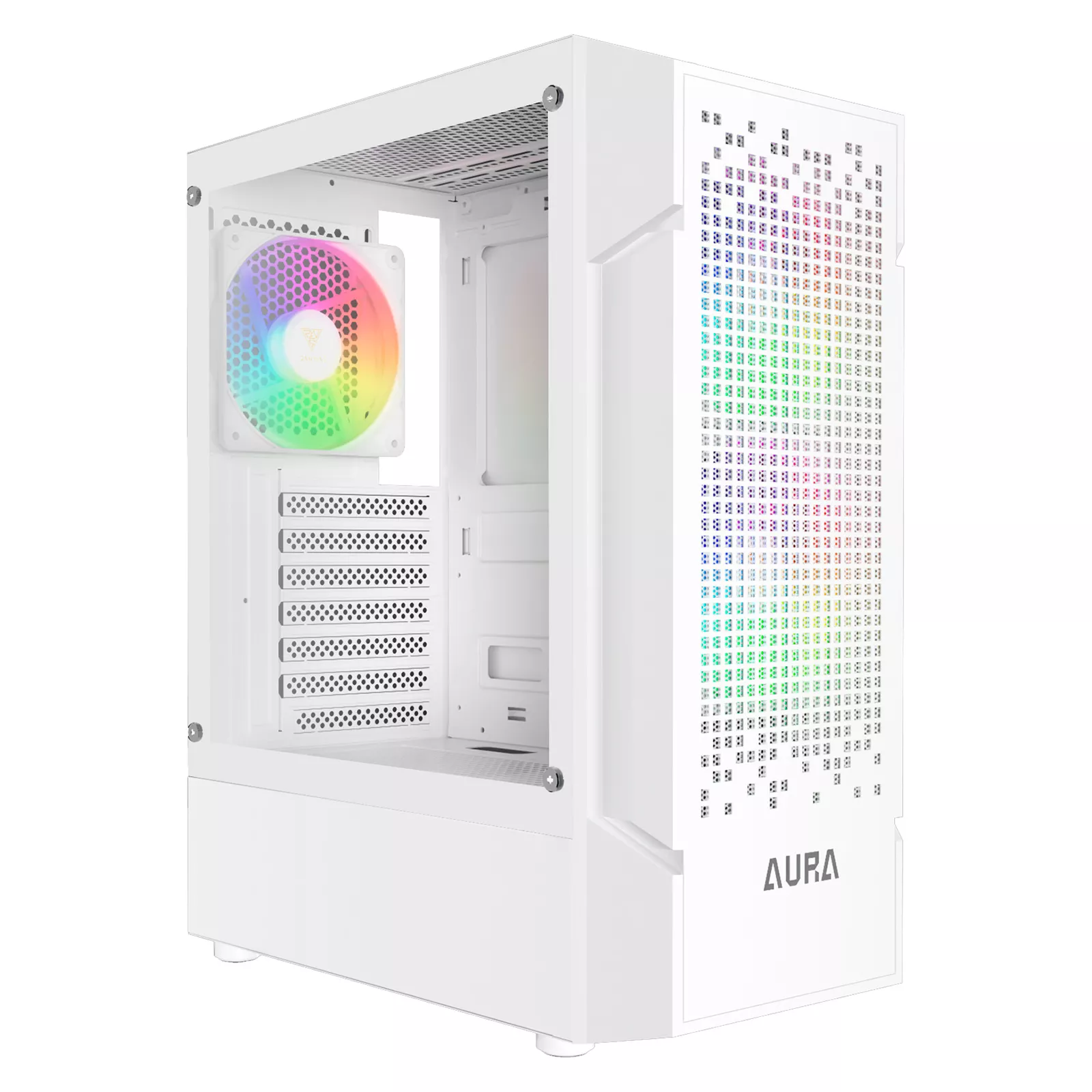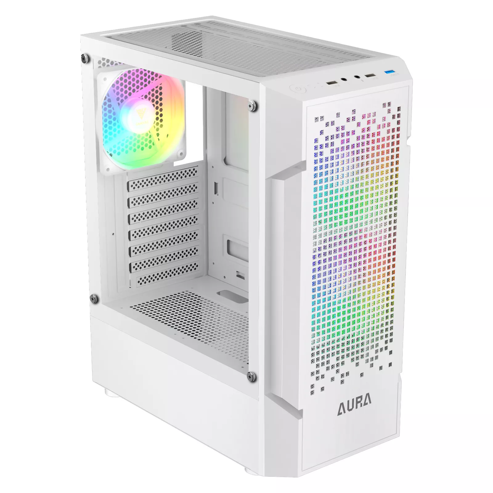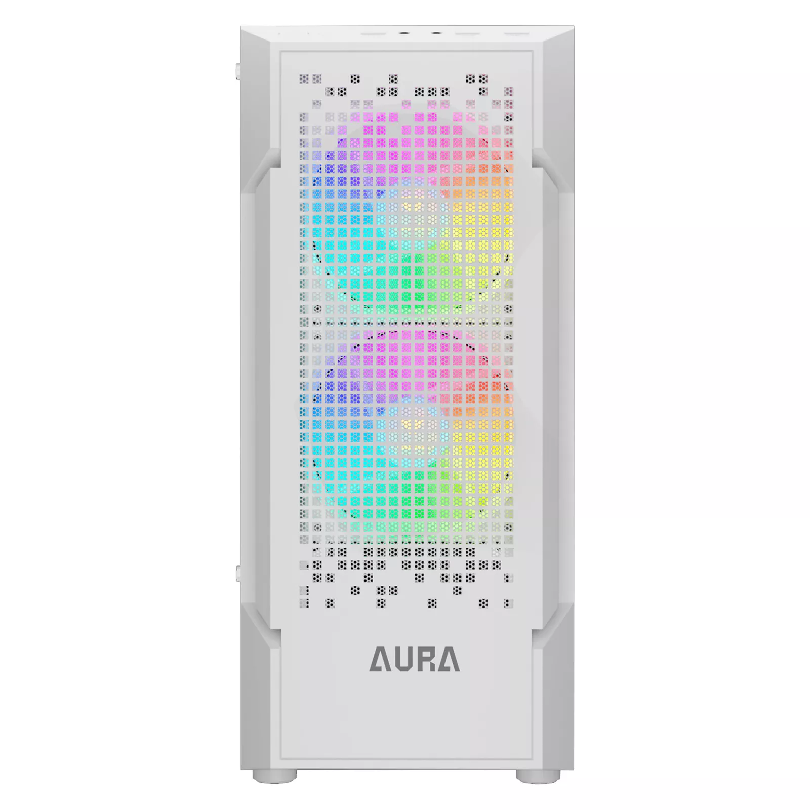 >Aura GC7 оборудован перфорированной передней панелью с квадратными отверстиями и эффектом градиента, а также 3 встроенными вентиляторами RGB для повышения теплового и эстетического эффекта.