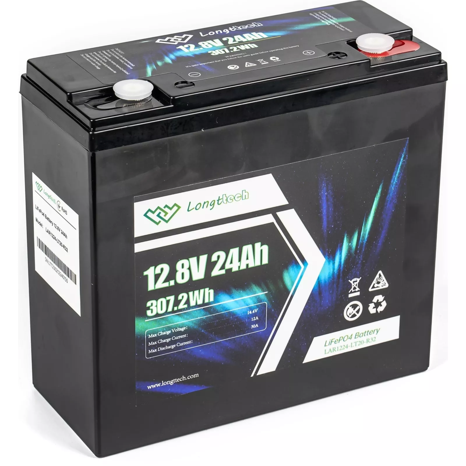 Напряжение – 12.8 В, Емкость – 24 Ач, Ток заряда – 12 А, 25 А, 2000 циклов, 181 х 77 х 170 мм, 3.1 кг
