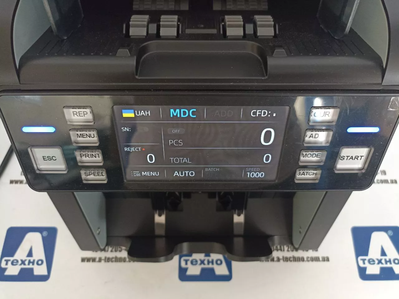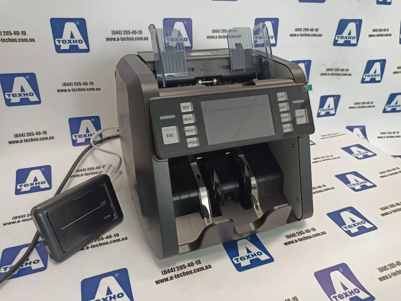 Счетчик банкнот, купюр, денег BCASH MVC800 с функцией пересчета смешанной пачки с определением номинала. Емкость загрузочного лотка - 500 банкнот, емкость приемного лотка - до 300 банкнот (зависит от состояния банкнот). Скорость пересчета - 800 и 1000 банкнот/мин (в режиме определения номинала), 800/1000/1200 банкнот/мин в режиме простого пересчета. Размер и толщина банкнот любые. Улучшенная детекция на фальшивки - ультрафиолетовая, магнитная (5 датчиков), металлизированная лента, инфракрасная, по образу, плотности и размеру с использованием 2 высокоточных CIS сканеров (только в А-Техно модификация с улучшенными сканерами 2025 года). Поддерживаемые валюты: Гривна (UAH), доллар (USD), евро (EUR), фунт, франк, польский злотый, шведская крона. Возможность пересчета как смешанной пачки так и только одного номинала, а также выборочно банкнот разного образца (например, только новые доллары из пачки). В комплекте выносной дисплей для клиента, чехол. Сертифицирован Европейским Центральным Банком. Важно - признаком подлинности устройства является наличие голографической наклейки с надписью BCASH (другие надписи свидетельствуют о не оригинальном счетчике). Разъемы USB, RS232, LAN. Большой цветной дисплей 4,5 дюйма, поддержка сенсорного и кнопочного управления. Износостойкие кнопки, выдерживающие активную работу. Одна самых тихих моделей в своем классе. Мощность 80Вт. Габаритные размеры 265х240х280 мм. Вес 6,8 кг. Модель адаптирована под все современные банкноты (в том числе 1000, 500 грн и т.д.). Эксклюзивно в А-Техно - модель 2025 года с усиленной конструкцией и улучшенными CIS-сканерами!