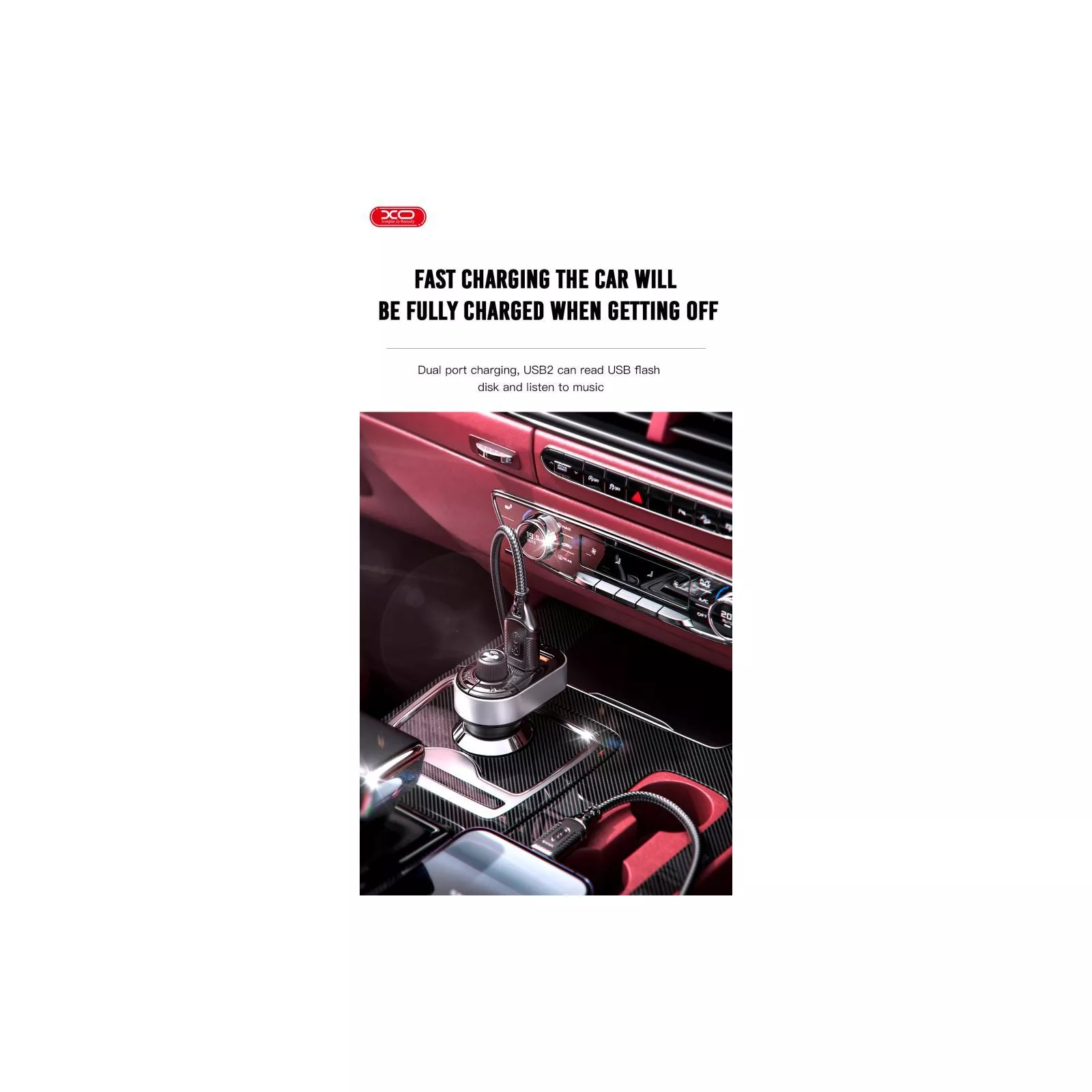 FM -трансмиттер с функцией Bluetooth, позволяющей передавать музыку с устройства на радио автомобиля. Встроенный порт USB позволяет заряжать устройство во время езды. Также можно использовать флешку для прослушивания музыки. Дисплей с подсветкой и подсветкой окружающей обстановки добавляют удобства в использовании.