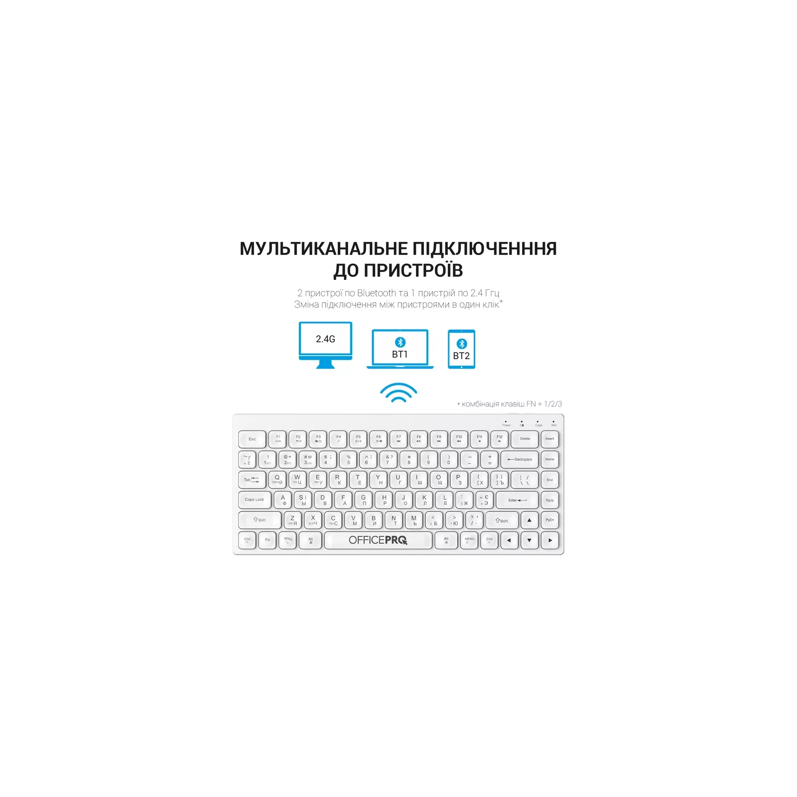 Клавиатура работает в двух режимах: вы можете использовать ее как обычную беспроводную клавиатуру или подключить к устройству через Bluetooth 5.0. У вас всегда будет удобный и быстрый доступ к компьютеру, ноутбуку, смартфону или планшету, даже на расстоянии десяти метров от них. Размеры клавиатуры очень компактны — всего 311 x 132 x 21.5 мм. Она займет минимум места на вашем столе и станет отличным дополнением к рабочей среде. Клавиатура имеет восемьдесят четыре клавиши, которые очень приятно нажимать. Клавиши рассчитаны на восемь миллионов нажатий, что гарантирует длительный срок службы. Больше не нужно беспокоиться об изношенных клавишах! Зарядить клавиатуру — дело одного часа, и вы сможете использовать ее непрерывно в течение длительного времени. Емкость батареи составляет 200 мА*ч. Теперь вы можете забыть о завязанных кабелях и рабочих местах. Эта клавиатура создана, чтобы сделать вашу работу комфортной и продуктивной. Убедитесь, что у вас всегда есть доступ к новейшим технологиям и удобствам на рабочем столе — вы заслуживаете этого!