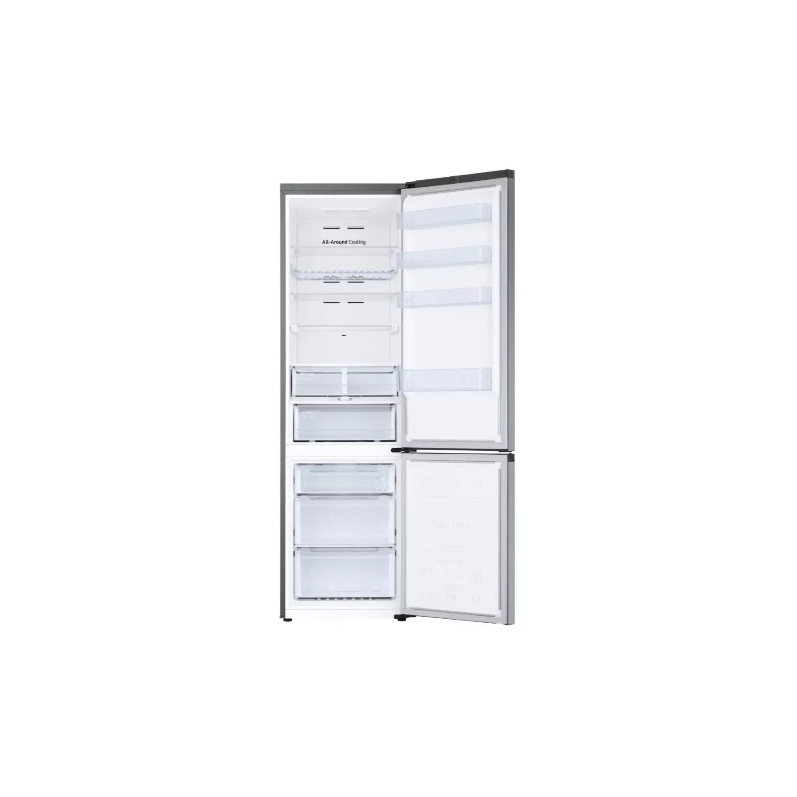Гарантирует, что вся ваша пища должным образом охлаждена. Система всестороннего охлаждения равномерно охлаждает каждое отделение от угла к углу. Она постоянно проверяет температуру и обеспечивает циркуляцию холодного воздуха через оптимально расположенные вентиляционные отверстия. Продолжительная свежесть продуктов без образования льда Система No Frost с автоматической разморозкой Не тратьте время и энергию на размораживание холодильника. Технология No Frost улучшает циркуляцию воздуха для поддержания постоянной температуры, что предотвращает образование льда. Благодаря ей нужная температура достигается гораздо быстрее. И требует меньшей нагрузки от системы охлаждения.