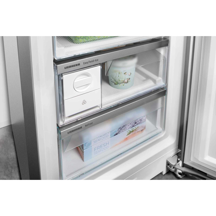 Открывая морозильную камеру вы хотите видеть продукты, а не лед или иней. Технология NoFrost защищает морозильную камеру от обледенения, что обычно требует много энергии и иногда значительных затрат. Благодаря NoFrost вам не придется тратить кучу усилий на размораживание холодильника, поэтому у вас будет больше времени на другие дела и сможете сэкономить деньги. использование двух отдельных контуров, поэтому воздух из холодильной и морозильной камеры не смешивается. Благодаря этому продукты не пересыхают и не впитывают посторонние запахи. Это означает, что вы будете выбрасывать и покупать меньше продуктов и иметь возможность больше экономить и наслаждаться жизнью. Холодильник Liebherr с глянцевой белой поверхностью удачно вписывается в интерьер светлых оттенков и никогда не выходит из моды. Он всегда будет современным, красивым и функциональным. Белая поверхность прочная и легко моется, поэтому ваш холодильник будет хорошо выглядеть в течение многих лет. просто и вы будете делать это интуитивно. Все функции верно упорядочены. С помощью прикосновений можно легко выбирать функции и проверять текущую температуру холодильника. Благодаря льдогенератору EasyTwist-Ice вы можете легко и быстро приготовить кубики льда без подключения к водопроводу. Достаточно залить воду в лоток, дать ей замерзнуть, вернуть и извлечь готовые кубики льда – прохладительные напитки можно подавать. Устройство EasyTwist-Ice легко моется и обеспечивает гигиенически чистую выработку льда.