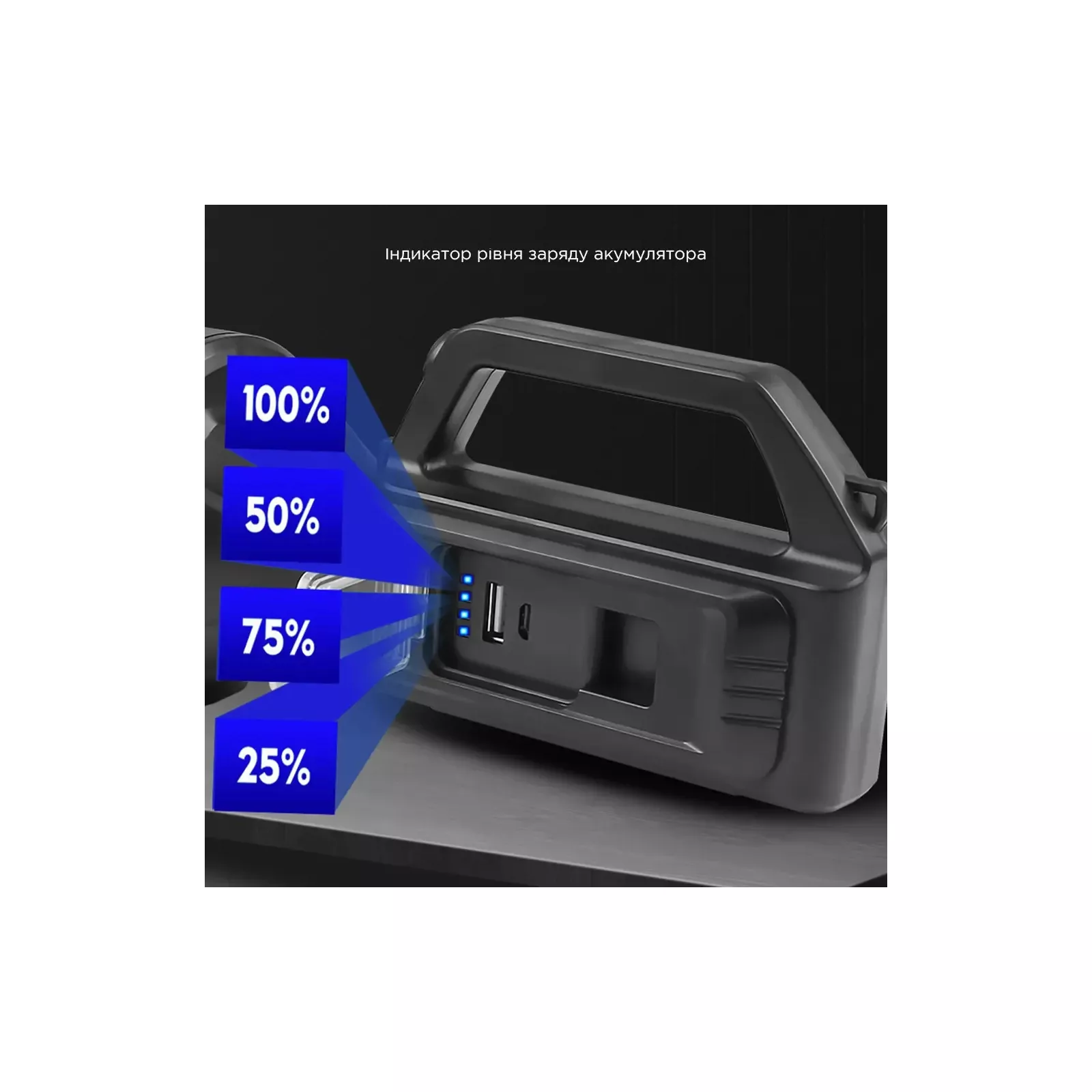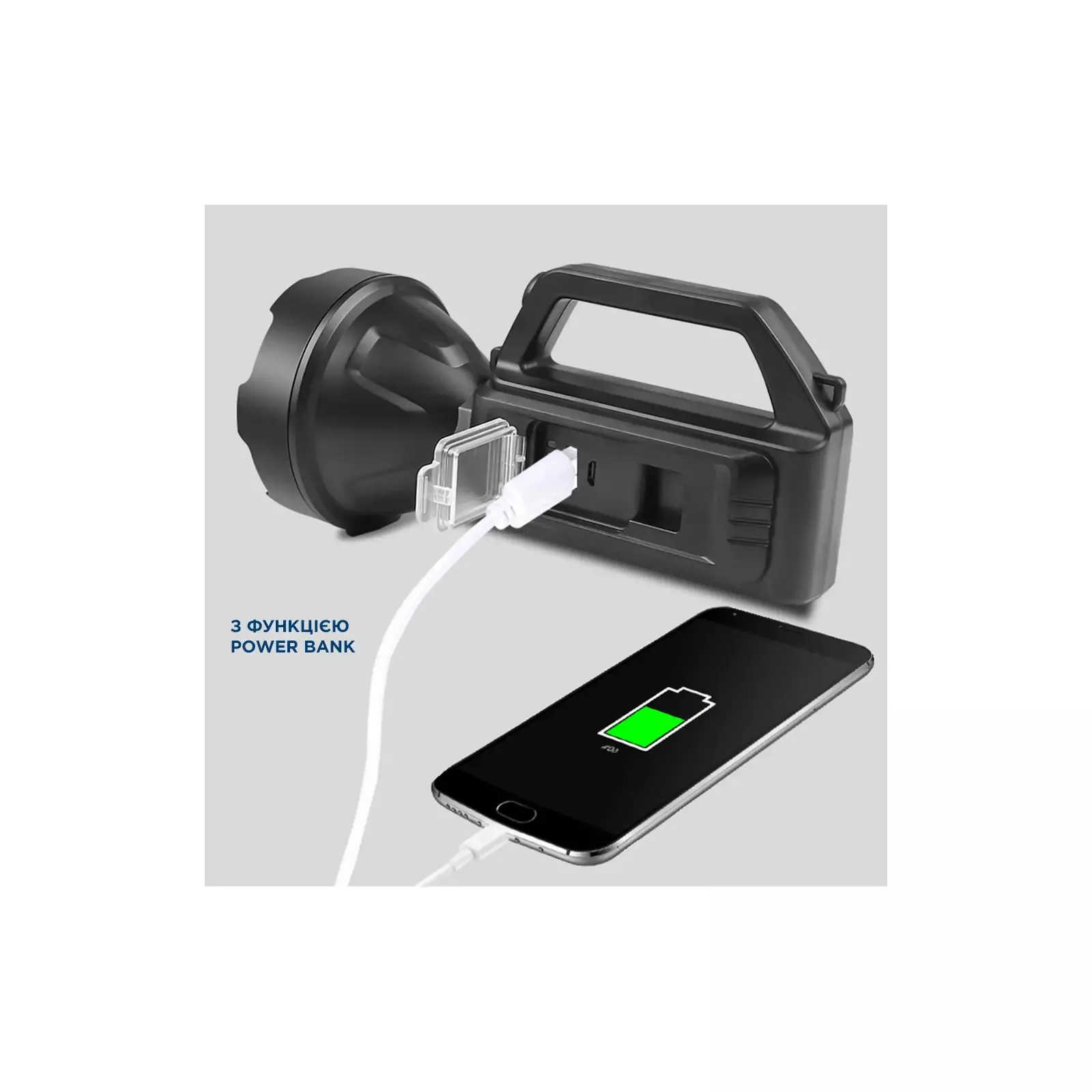 Зарядка портативных устройств: подключите шнур питания к разъему USB фонаря, а другой конец шнура к порту Micro-USB портативного устройства – начнется заряд устройства, соответствующий индикатор зарядки загорится. Портативные устройства можно заряжать только в выключенном состоянии.