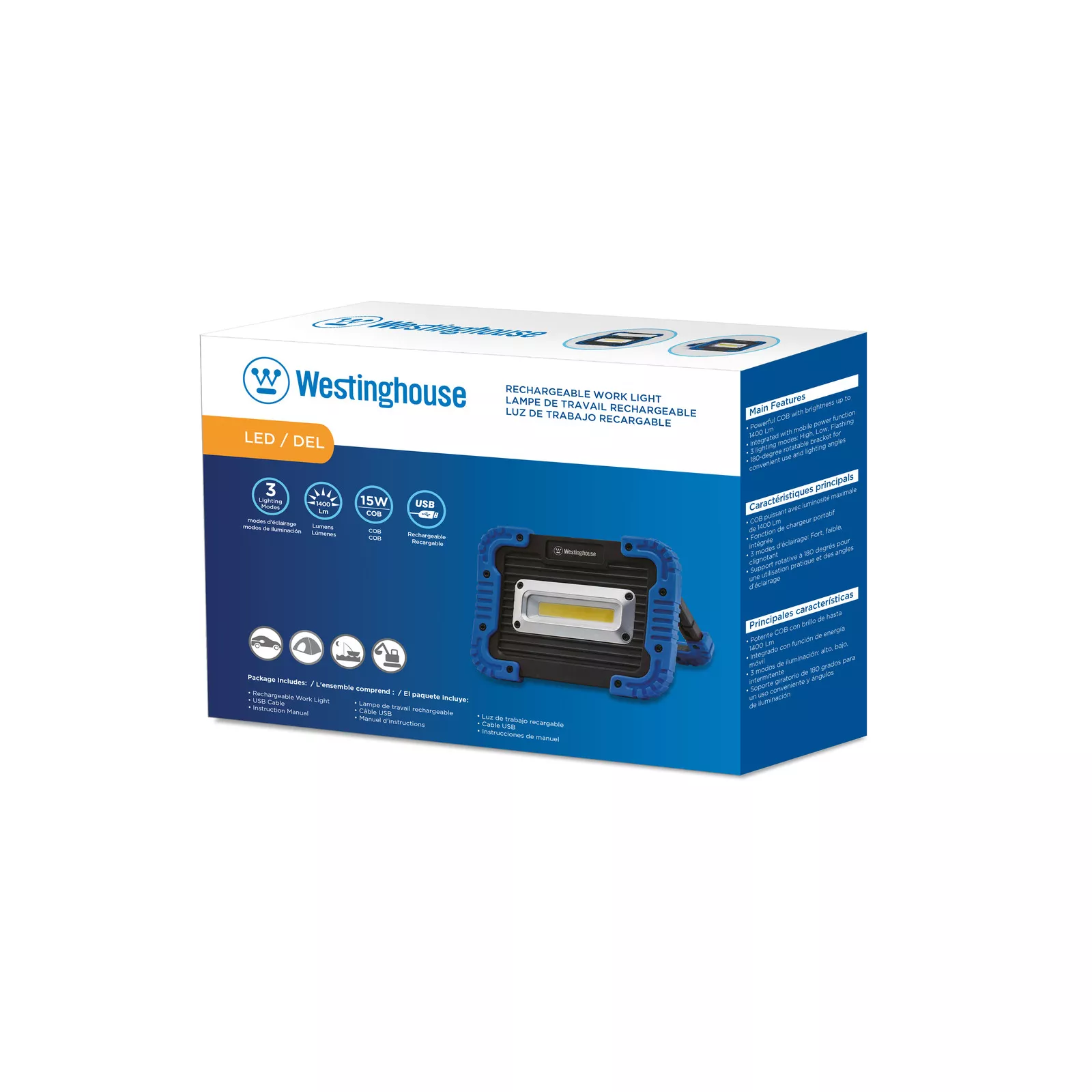 С помощью кронштейна, вращающегося на 180°, можно обеспечить различные углы падения света. Фонарь можно заряжать от входящего в комплект кабеля USB. Имеется светодиодная индикация уровня заряда, что позволит контролировать уровень заряда и быть всегда готовым к использованию. Фонарь оснащен и укомплектован защитой от переразрядки и перезарядки аккумулятора, обеспечивая его использование в безопасном режиме для продления срока использования изделия. Помимо функционирования в качестве обычного прожекторного фонаря, этот прибор также может использоваться в качестве портативного зарядного устройства, обеспечивая дополнительный источник энергии во время неотложных ситуаций – это идеальный выбор для ремонтных работ, кемпинга, рыболовства, охоты и других видов активного отдыха.
