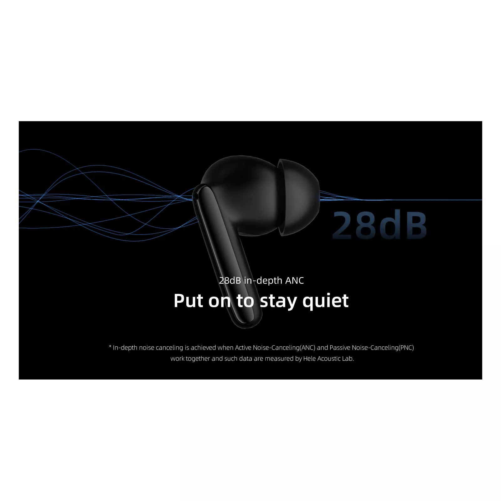 QCY T13 ANC 2 — беспроводные наушники с усовершенствованным ANC с шумом подавлением до 28 дБ, благодаря чему вы сможете сосредоточиться на прослушивании даже в людных и шумных местах.