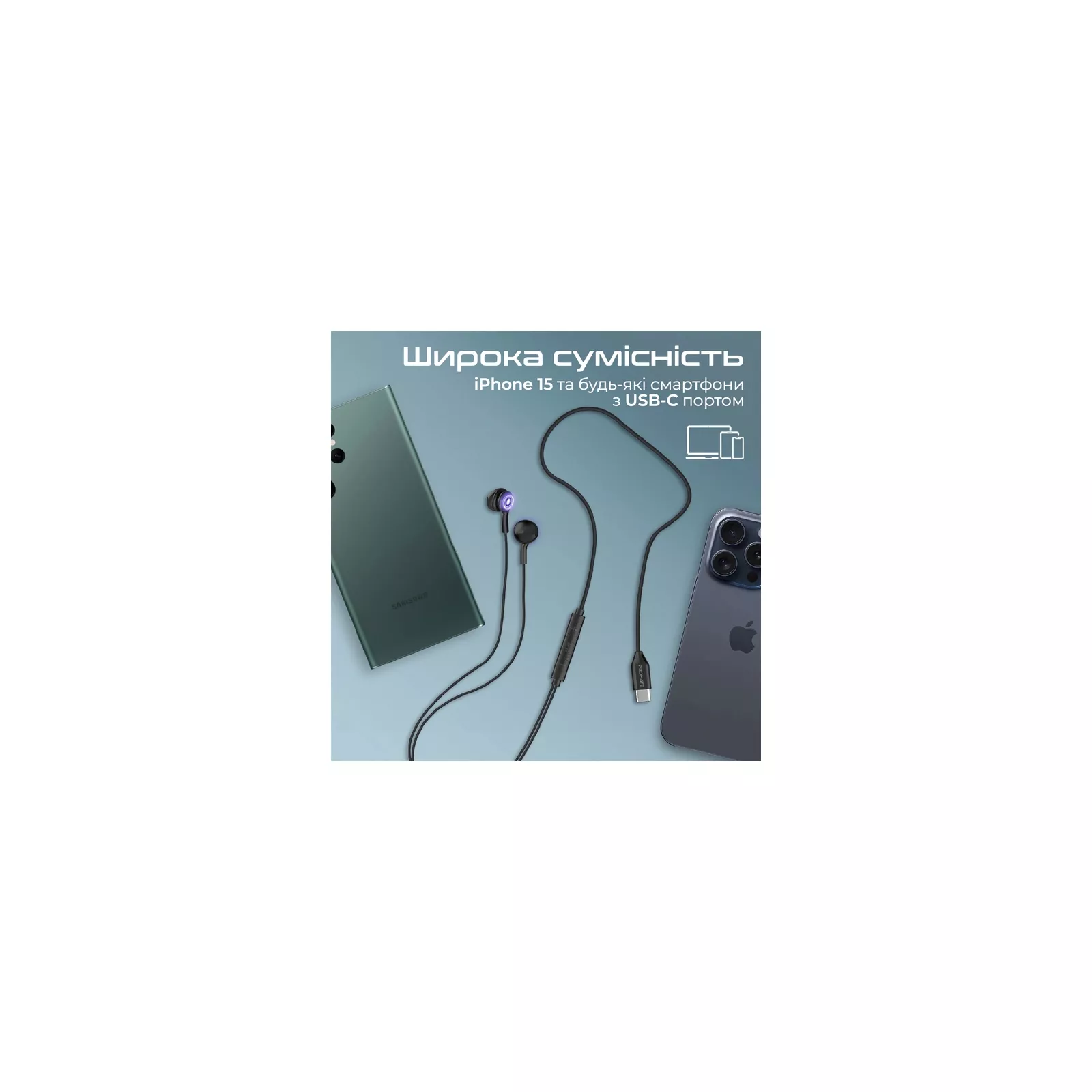 LumiBuds-C от Promate - проводные наушники-вкладыши с USB-C коннектором. Глубокие басы, HD микрофон и эргономичный корпус делают их идеальными для прослушивания музыки. Особенности: Отличный звук : Качественные динамические излучатели обеспечивают сбалансированное звучание на всем диапазоне частот. твой день ярче.