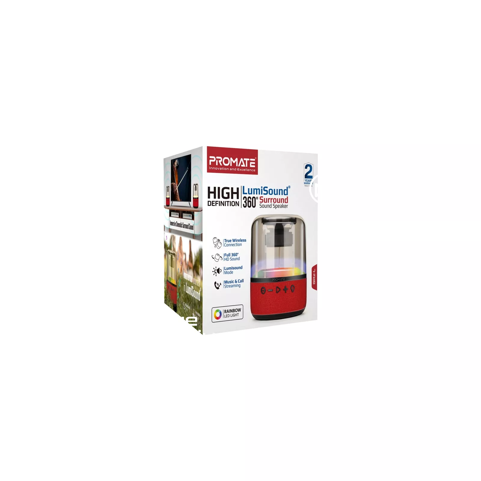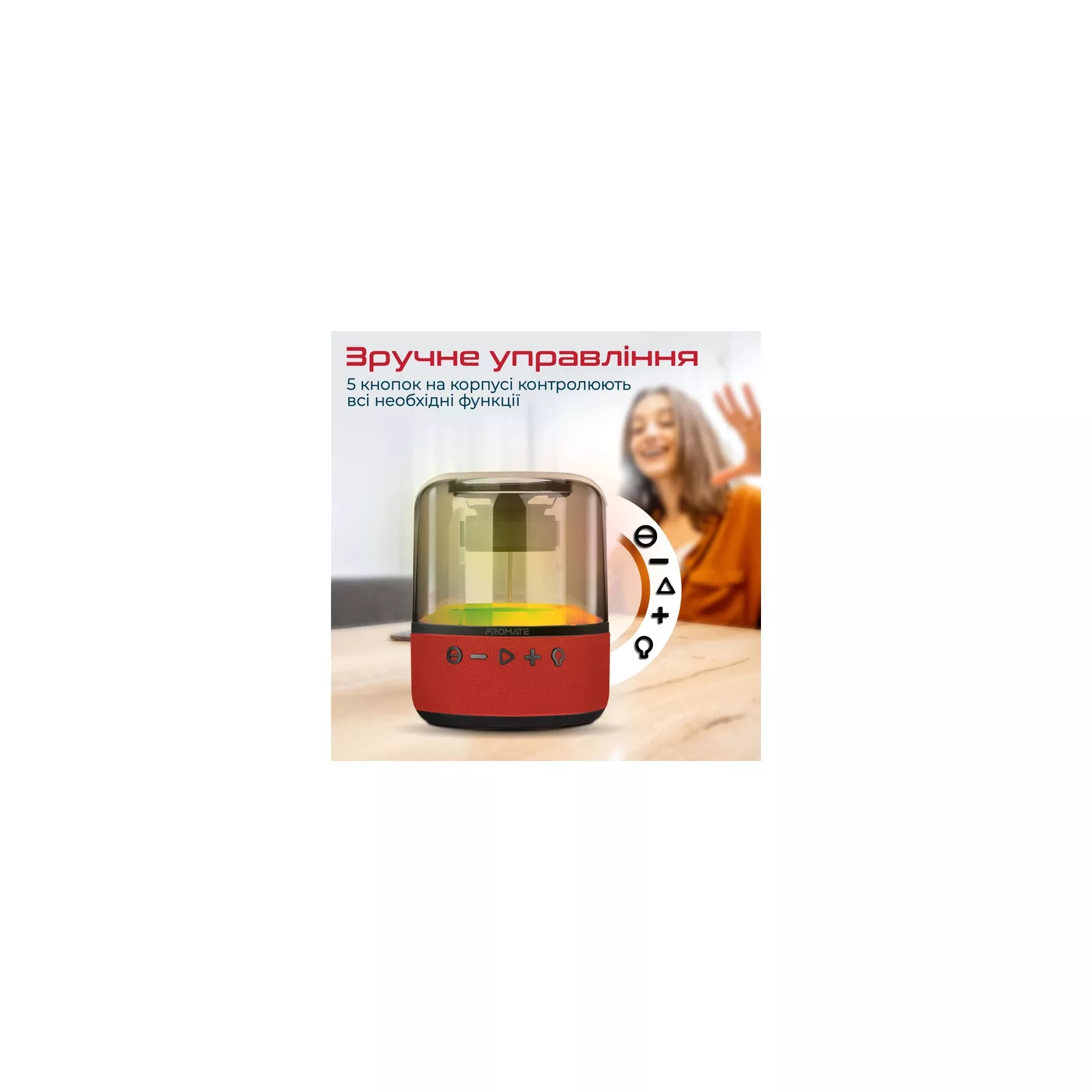 Стильная портативная колонка Promate Glitz -L издает 10W насыщенного и объемного звучания на 360°. А невероятная иллюминация по технологии LumiSound® заполнит яркими красками любое пространство.