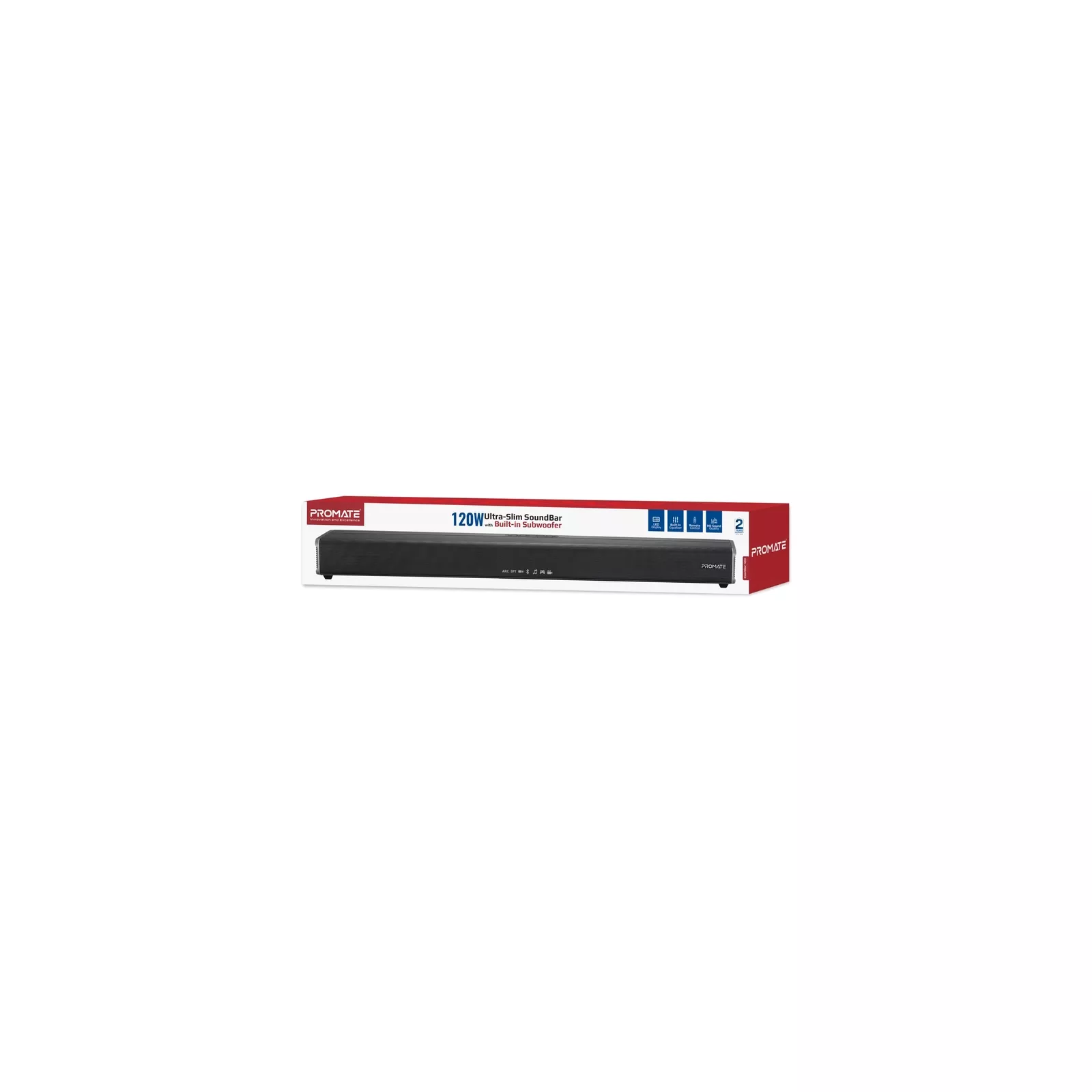 Посети кинотеатр не выходя из дома, почувствуй мощность стадиона, погрузись в игровую атмосферу или наполни комнату ритмами любимых треков благодаря мощному и объемному звуку из саундбара CastBar-120 от Promate.