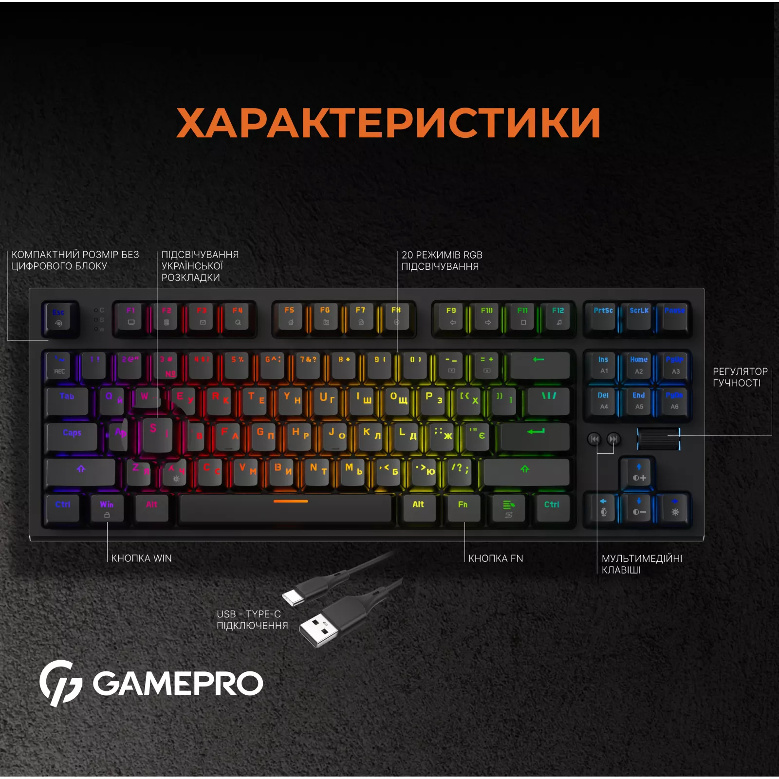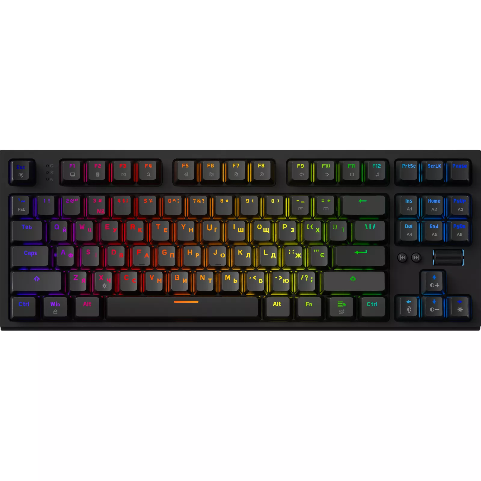 Управлять подсветкой можно не только через программное обеспечение, но и по с помощью комбинаций клавиш на самой клавиатуре. Программное обеспечение клавиатуры позволяет назначать на любую клавишу какие-либо действия, включая написание макросов и их назначение на нужные. Кроме того, клавиатура имеет частоту опроса до 1000 Гц, что обеспечивает максимальную чувствительность и скорость реакции. Удобство использования подчеркивается съемным Type-C кабелем длиной 1.8 м, который легко подключается к любому устройству. выбором для любого юзера. Кроме того, MK180B имеет много разных комбинаций с клавишей Fn, что расширяет ее функциональные возможности. Символы на клавишах просвечиваются как английские, так и украинские, что не только функционально, но и красиво. и дополнительный набор кейкапов, позволяющий изменять внешний вид клавиатуры, делая ее более уникальной. Кроме того, клавиатура имеет две пары ножек разного уровня, что добавляет удобства, позволяя выставить нужный пользователю угол наклона. Эта клавиатура – идеальный выбор для ценящих геймеров и профессионалов, стиль, комфорт и надежность. Она обеспечит вам максимальную производительность и удовлетворение от каждого нажатия.