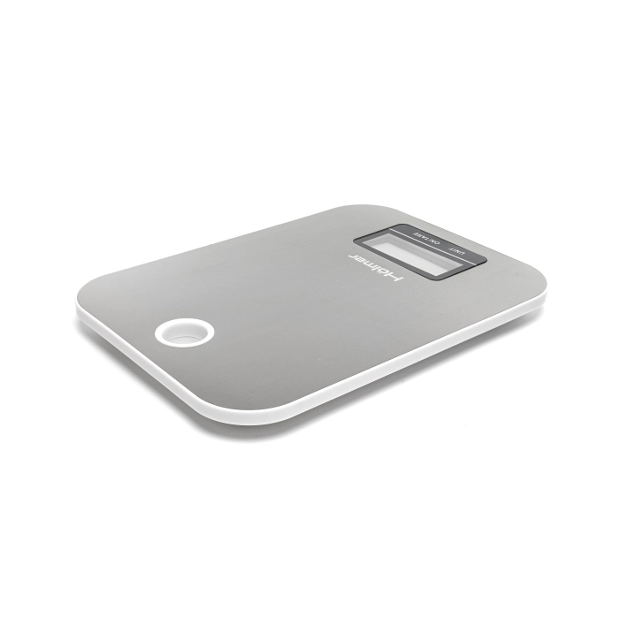 Весы электронные кухонные HSK-2216SH изготовлены из нержавеющей стали, что обеспечивает их долговечность и стильный вид. Они оснащены и укомплектованы LED-дисплеем для удобного считывания результатов взвешивания в граммах, фунтах и унциях. Весы имеют точность взвешивания с шагом 1 грамм и максимальный вес до 5 кг. Для питания используются три батарейки типа AAA, входящие в комплект. Функция автоматического отключения позволяет экономить заряд батарей. Размер поверхности составляет 22х16 см, а общие габариты – 22х16х1,7 см. Весы также оснащены и укомплектованы крючком для удобного хранения.