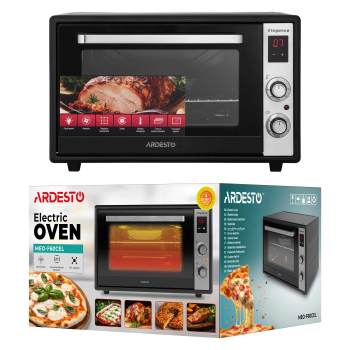 Электрическая печь ARDESTO Elegance – лучший выбор для современной кухни. Объем 60 л, мощность 2кВт, 6 режимов приготовления и регулировки температуры от 50 до 250°С обеспечивают широкие возможности для кулинарных проделок. Модель оснащена и укомплектована цифровым дисплеем, таймером (90 мин), конвекцией и индикацией завершения процесса.
