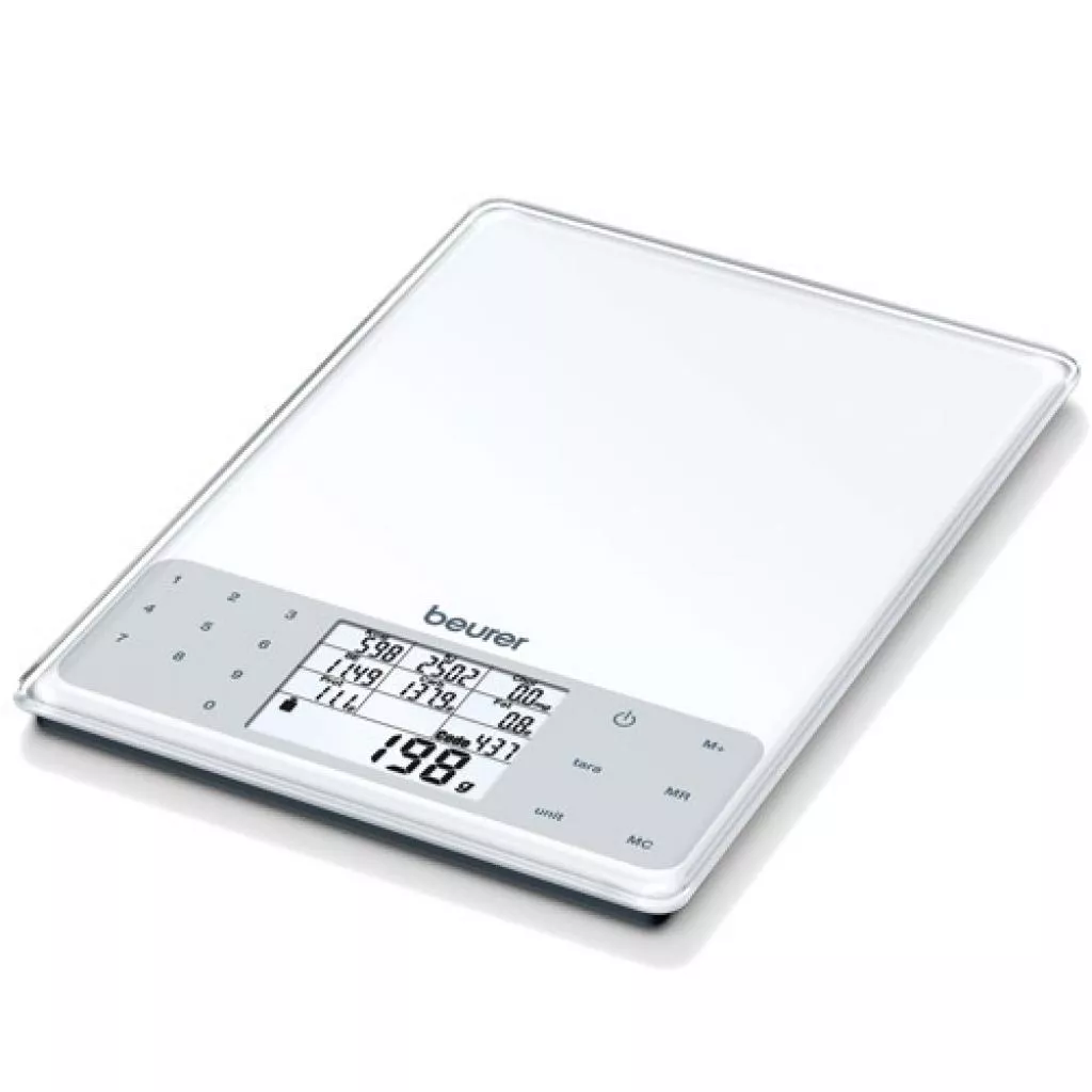 Весы кухонные BEURER DS 61 (4211125/709.05/1) - это диетологические весы с расчетом энергетической ценности продуктов. В памяти хранятся 950 наименований продуктов с данными о содержании жира, белка, углеводов, хлебных единиц и холестерина. Также 50 пустых ячеек для ввода собственных продуктов. Функция тара позволяет производить взвешивание в любой емкости. Благодаря суммированию результатов на дисплей можно вывести информацию о количестве питательных веществ и калорий, употребленных с начала отсчета (например, за день). Сенсорная панель предохраняет кнопки от случайного попадания жидкости или муки.