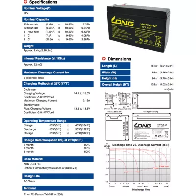 | Модель | 12В 7.2 Ач (WP7.2-12) |