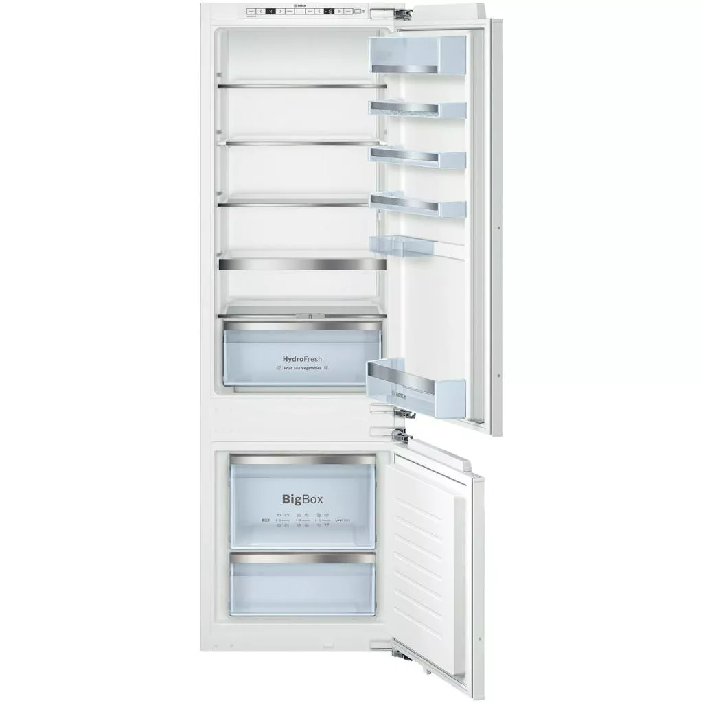 Универсальный холодильник BOSCH KIS87AF30, благодаря практичной возможности встраивания, подойдет практически под любой интерьер кухни. В Bosch KIS 87AF30 предусмотрено две двери и нижнее расположение морозильной камеры, что создает дополнительное удобство в процессе эксплуатации холодильника. Электронное управление дополнено светодиодным дисплеем, что позволяет Вам максимально точно устанавливать температуру в каждой камере отдельно, а сверхчувствительные сенсорные кнопки TouchControl делают управление более удобным и очень приятным.