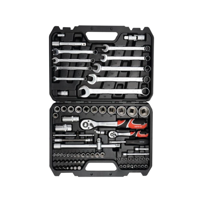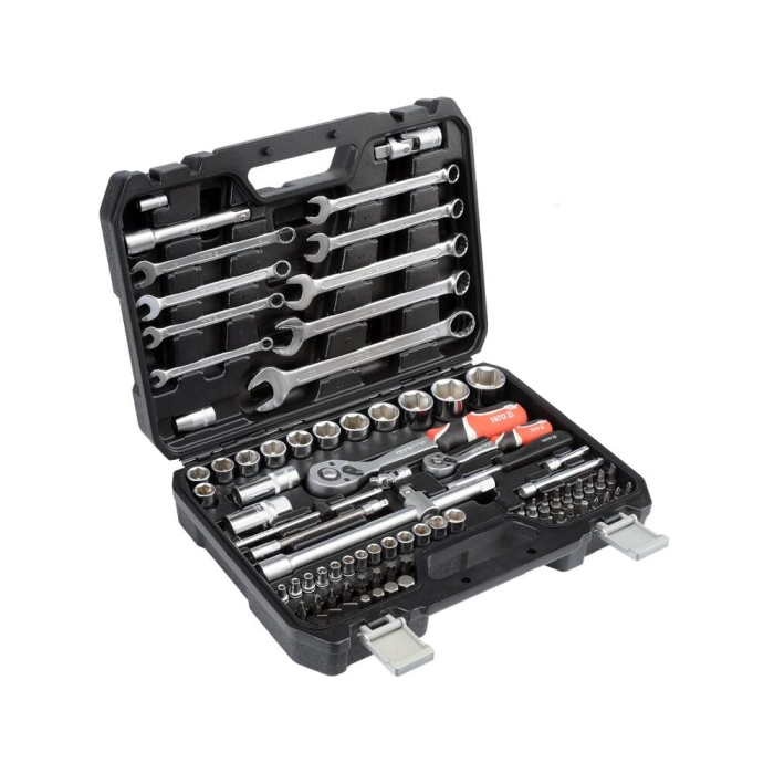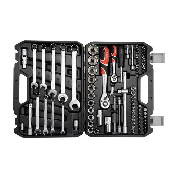 | Комплектация набора | биты, вороток, гаечные ключи, головки для свечей зажигания, держатель для бит, кардан шарнирный, торцевые головки, трещотка, удлинитель |