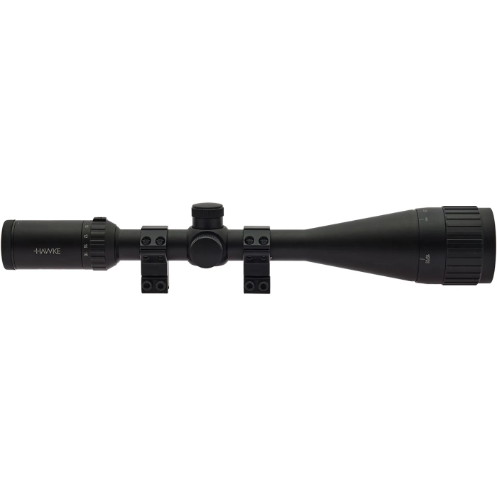 это сбалансированный оптический прицел от именитого бренда Hawke Optics из серии бюджетных прицелов. Он имеет отличные технические характеристики за свою цену – большой 50-миллиметровый объектив, регулируемое увеличение в пределах от 4х до 16х, систему фокусировки на объективе (АО) и подсветку прицельной сетки.