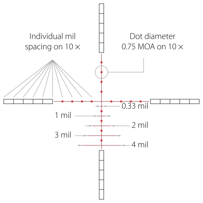 | Дополнительно | 6 уровней яркости, винт шестигранный, водонепроницаемый корпус, вторая фокальная плоскость, газонаполнение, защитные крышки, солнцезащитная бленда, ударопрочный корпус, фокусировка |