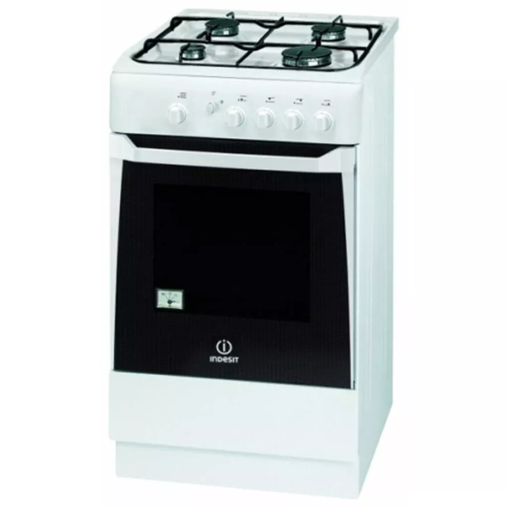 Небольшие габариты плиты Indesit KNJ1G2(W) позволяют установить ее в кухне, где, казалось бы, невозможно поставить что-то. Ширина и глубина плиты 50 сантиметров, а высота 85 сантиметров. Несмотря на компактный размер, объем духовки составляет 50 литров. Особенностью плиты является газовая варочная панель, состоящая из четырех газовых конфорок, и газовая духовка. Духовка оснащена противнем и поддоном, а также ящиком для посуды. Класс энергопотребления плиты С. Духовой шкаф может нагреваться максимум до 250 °С. Управление плитой механическое с помощью четырех поворотных переключателей. Варочная поверхность в этой модели эмалированная.