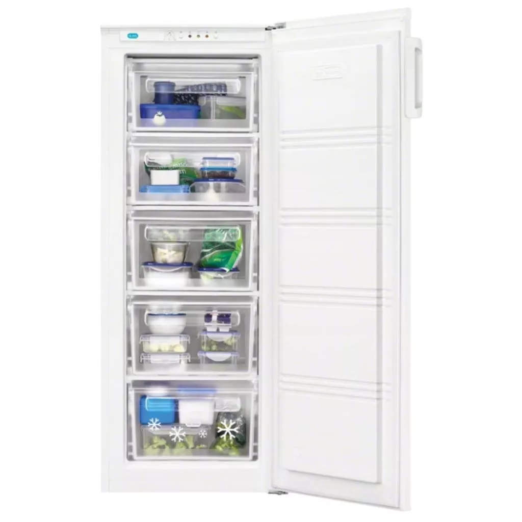 Общий объем составляет 157 л. Для размещения продуктов предусмотрены 5 пластиковых прозрачных выдвижных ящика. Морозильная камера Zanussi ZFP18400WA оснащена функцией быстрого замораживания, за счет которой продукты, замораживаясь, сохраняют максимальной количество витаминов, микроэлементов, а также свой цвет, вкус и запах. Максимальная мощность замораживания достигает 8-ми кг/сутки. При аварийном отключении электроэнергии ZANUSSI ZFP 18400 WA (ZFP18400WA) способна в течении 11-ти часов поддержать оптимальную температуру для хранения продуктов.