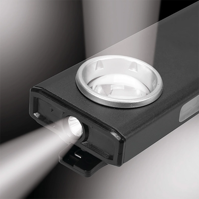 Прочный алюминиевый фонарь Yato YT-08556 оснащен и укомплектован диодом Osram, который обеспечивает световой поток 500 лм. дальность действия 55 м. Три режима работы позволяют регулировать освещение в зависимости от активности и уровня заряда аккумулятора. оснащен и укомплектован литий-полимерным аккумулятором 3,7В 1500мАч, обеспечивает до 9 часов работы и позволяет заряжать другие устройства – функция powerbank. Дополнительным преимуществом является возможность подвешивания фонаря различными способами - на магните, клипсе или крючке.