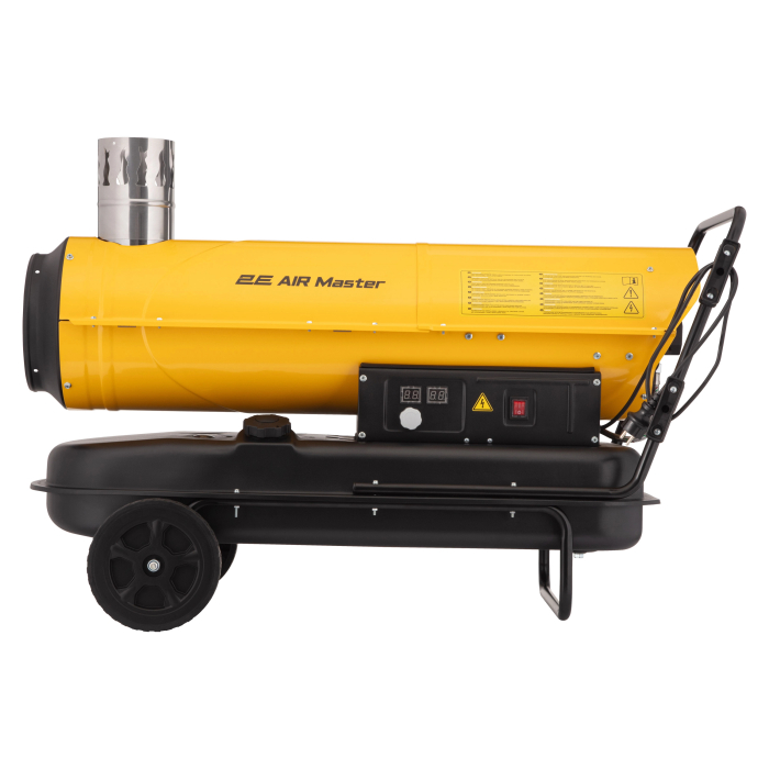 Дизельную тепловую пушку можно подключить к каналам вентиляции, уже имеющейся в помещении (при условии, что отвод газов идет на подъем без сгибов и углов первые 3 метра от пушки). Тем самым отвод продуктов горения становится еще удобнее и проще, а тепловая пушка остается эффективным инструментом выполнения широкого спектра задач. металлическую конструкцию с колесами и оснащенную и укомплектованную баком емкостью 56 литров. Может работать на дизельном горючем и керосине. Передние колеса позволяют свободно перемещать устройство между помещениями и объектами. оснащен и укомплектован датчик (индикатор) уровня топлива. Нагреватель имеет класс защиты IPX4.