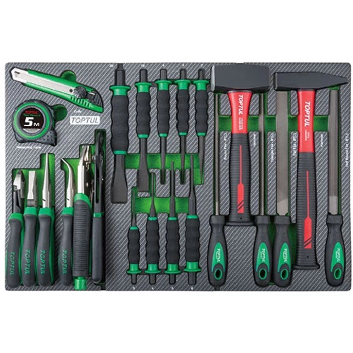 | Комплектация набора | бокорезы, зубило, молоток, напильник, нож, острогубцы, пассатижи, переставные клещи, пробойник, рулетка, шарнирно-губцевый инструмент |