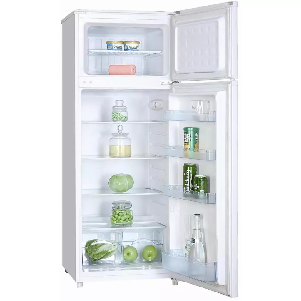 относится к категории двухкамерных холодильников. Это означает, что владелец получит в два раза больше полезного пространства без потери качества заморозки. Общий показатель рабочего объема составляет 217 литров. Распределение литража холодильной и морозильной камеры не равномерно. Первая получила 171 литр, вторая – 41 литр. Одной из главных особенностей Saturn ST-CF1962U является капельная автоматическая схема разморозки непосредственного холодильника. А вот морозилку следует убирать и размораживать вручную.
