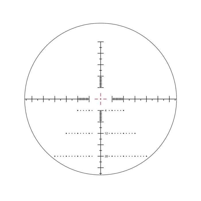 Прицельная сетка: Sentinel 6-24x50 имеет прицельную сетку типа VSE-3 MOA, расположенную в первой фокальной плоскости (FFP), поэтому размер сетки изменяется с увеличением. Это позволяет производить замеры дистанции с помощью сетки на любой кратности.