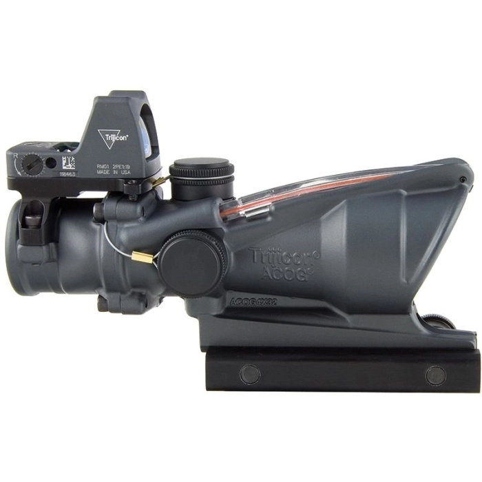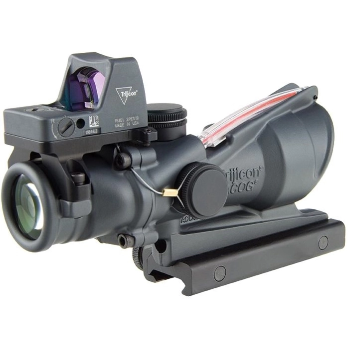 Компания создала комбинированный прицел Trijicon ACOG 4x32 BAC + RMR 3.25 МОА Gray. Основной прицел Trijicon имеет сетку с двойной подсветкой с использованием волоконной оптики и трития для яркой точки прицеливания в любых условиях освещения.