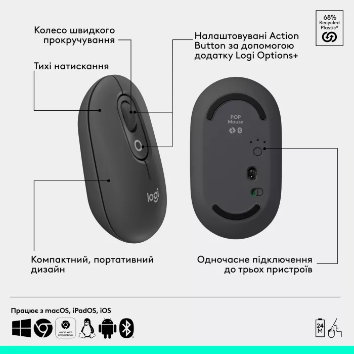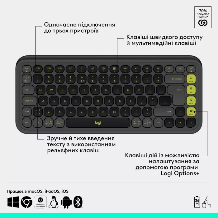 Logitech POP Icon Combo — это комплект, включающий Bluetooth-клавиатуру и мышь, разработанная для удобного и бесшумного использования. Клавиатура обеспечивает комфортный ввод текста благодаря эргономичному дизайну, а мышка поддерживает бесшумное нажатие клавиш, что позволяет работать без лишнего шума. Клавиатура и мышь оснащены и укомплектованы программируемыми клавишами и кнопками, которые можно настроить под собственные потребности. Это позволяет быстро получить доступ к требуемым функциям или приложениям, улучшая эффективность в работе. нажатием. Это делает комплект универсальным решением для ноутбуков, ПК и планшетов, обеспечивая беспроводной комфорт и свободу выбора.