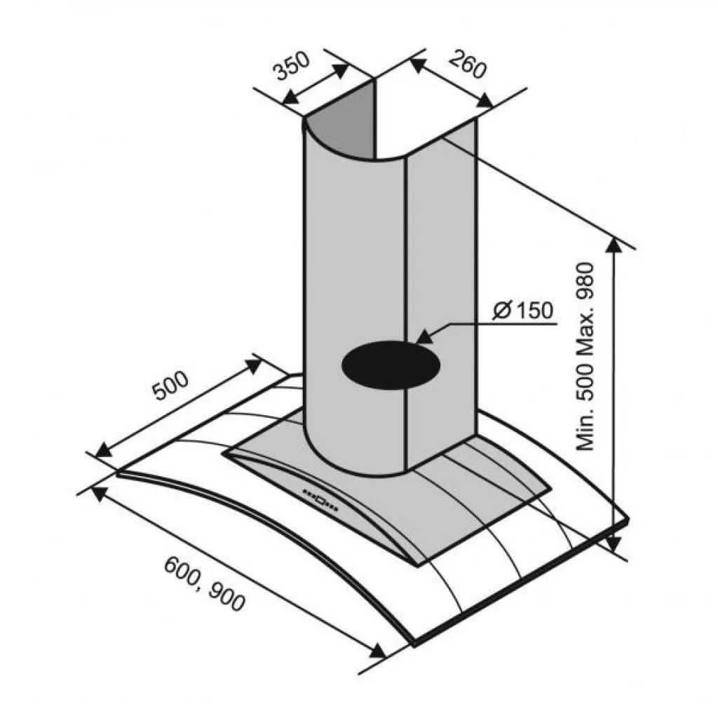 управляется при помощи сенсорных кнопок. Вытяжка имеет алюминиевый фильтр, который рассчитан на длительный срок использования. Этот фильтр требует периодической очистки при помощи обычных моющих средств. Модель укомплектована обратным клапаном.
