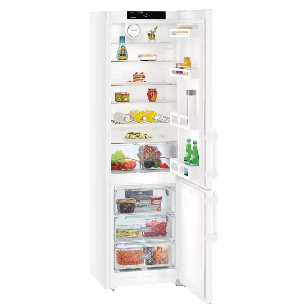 Свежесть и качественное хранение продуктов обеспечит двухкамерный холодильник Liebherr CN 4015. Он прекрасно подойдет для большой семьи. Общий полезный объем этой высокотехнологичной модели составляет 356 литров. Снизу расположена морозильная камера объемом 86 литров, а в верхней части предусмотрено 269-литровое холодильное отделение. Благодаря использованию современных технологий охлаждения холодильники Liebherr с системой NoFrost обеспечивают надежное длительное хранение продуктов.
