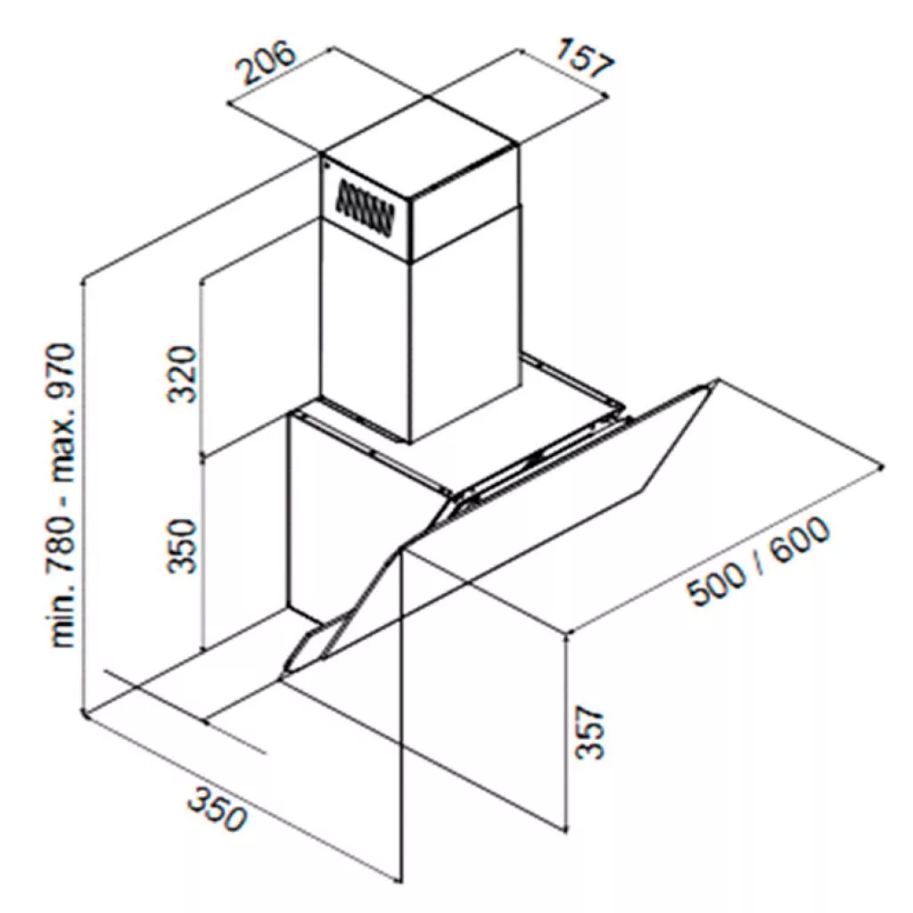 стоит отнести наличие обратного клапана, уровень шума в пределах 54 дБ. Рабочая зона кухни комфортно освещается LED лампами. Такая пристенная вытяжка послужит не только для устранения запахов на кухне, а и в качестве стильного элемента декора.