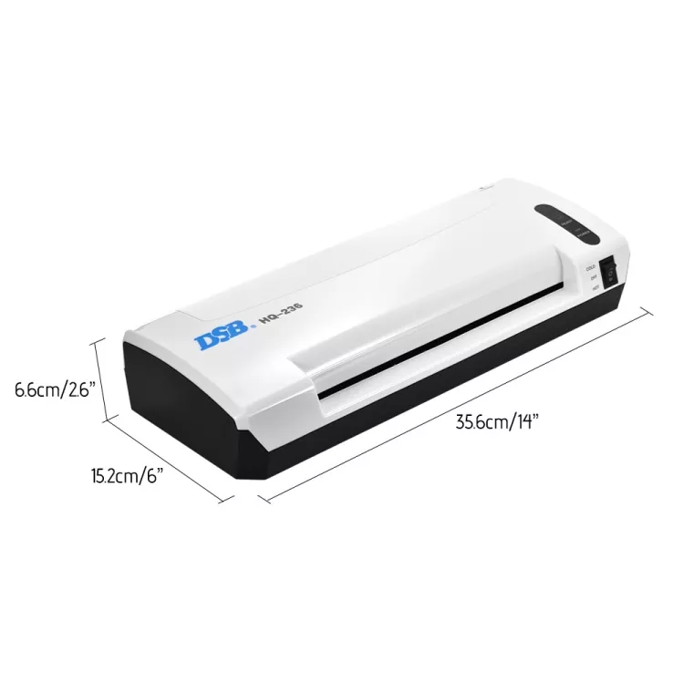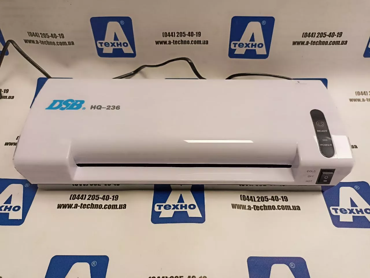 Ламинатор конвертный DSB HQ-236. Формат А4. Тип пакетный (конвертный). Ламинирование пленками от 75 до 125 мкм. Скорость ламинирование 400 мм/мин. Время нагрева - 2 минуты. Ширина ламинирования 230мм. Максимальная толщина материала - 0,5 мм. Холодное и гарячее ламинирование. В комплект входит роликовых резак для бумаги. Мощность 400Вт. Габариты 356х152х67 мм.