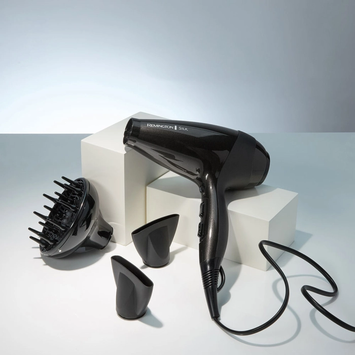 Мощный фен Remington AC9095 Silk с АС-мотором максимально и в полном объеме быстро и эффективно высушит ваши волосы. Благодаря АС-мотору, обычно используемому в профессиональных фенах, производительность этого фена поражает, его мощность составляет 2400 Вт, а скорость подачи воздуха 140 км/ч. Также фен имеет функцию ионизации, 2 скоростных и 3 температурных режима, турборежим и холодное обдувание для фиксации укладок. Кроме того, АС9095 имеет 3-метровый салонный шнур для удобства использования.
