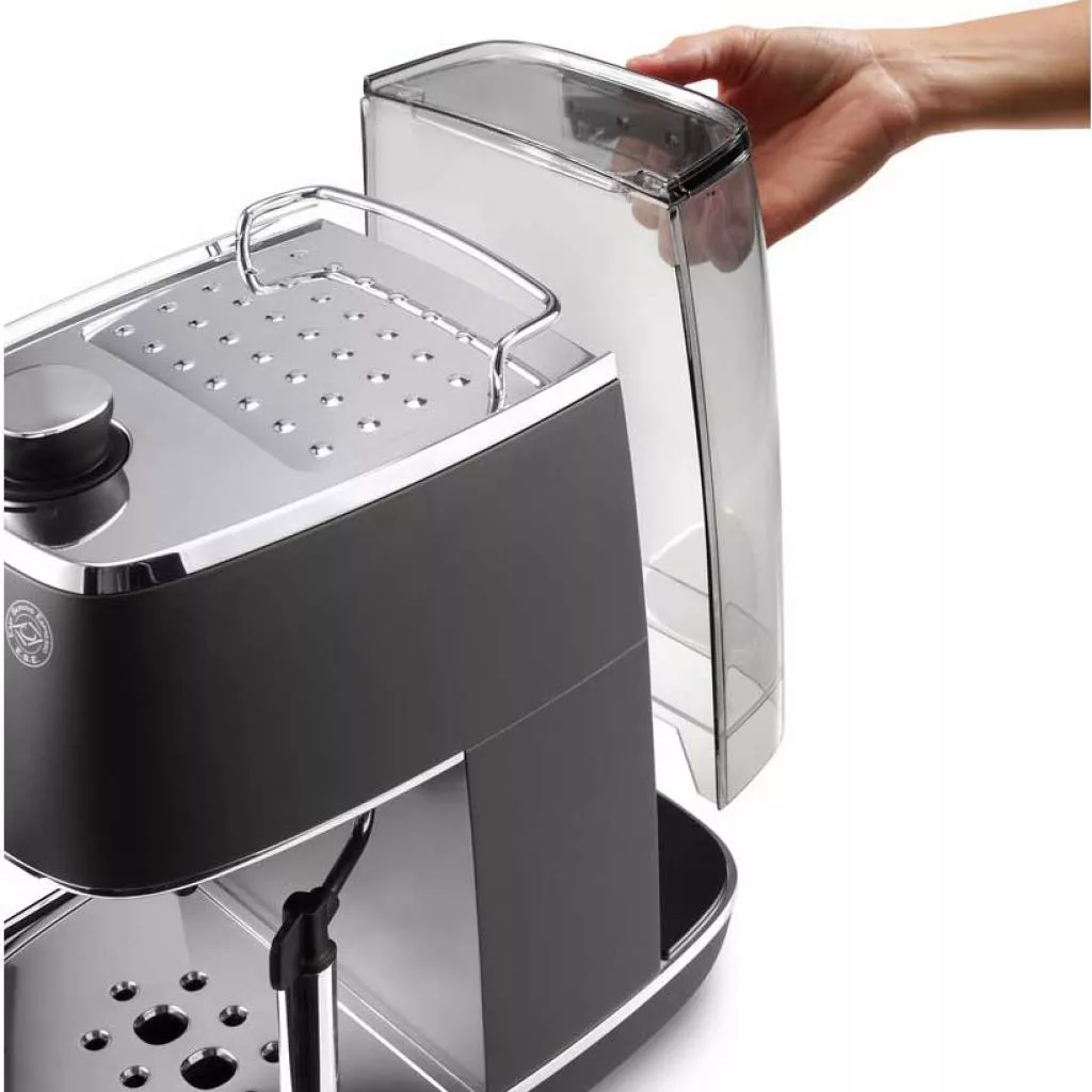 Кофеварка имеет прозрачный съемный контейнер для воды, который вмещает 1 литр. Верхняя панель кофеварки оснащена подогревом для чашек, благодаря чему вы сможете готовить кофе по всем правилам – в предварительно прогретую посуду. Световые индикаторы включения и выключения, съемный поддон для капель – все в данной кофеварке сделано для удобного и комфортного использования. В комплекте DeLonghi ECI 341 имеется темпер, который предназначен для утрамбовки кофе.