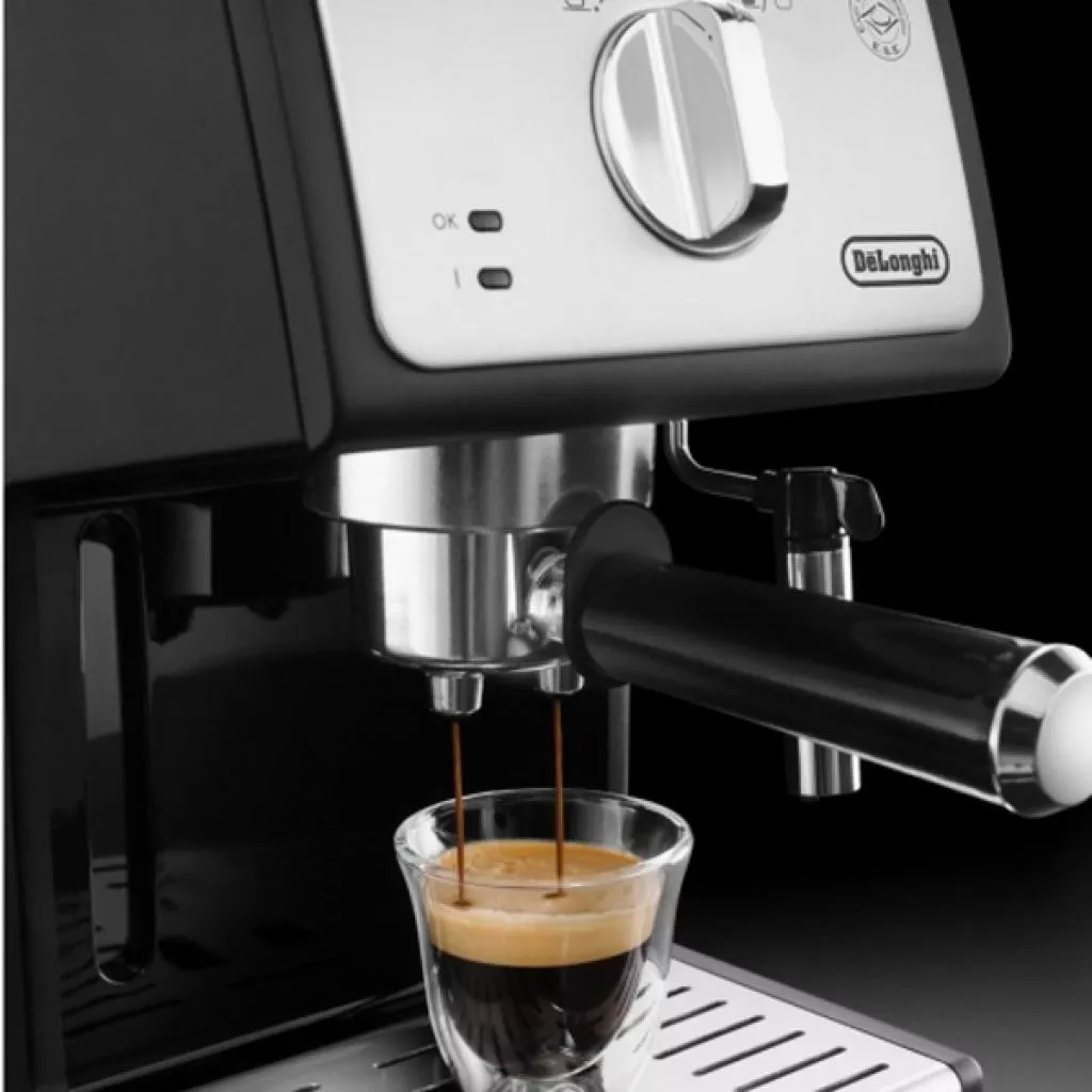 Купить кофеварку DeLonghi ECP33.21 – наслаждаться капучино, латте и другими молочными напитками. Прибор имеет ручной капучинатор с функцией подачи горячей воды, поэтому вы сможете приготовить не только кофе, но и чай. Хотите насладиться капучино с воздушной пенкой? Нет ничего проще, ваша помощница угостить вас кофе, который будет не хуже тех, что подают в ресторане. Что для этого нужно сделать? Опустите капучинатор в емкость с молоком, включите подачу пара – кофемашина взобьет молоко, а вы добавьте его в кофе. Результат вас не разочарует.