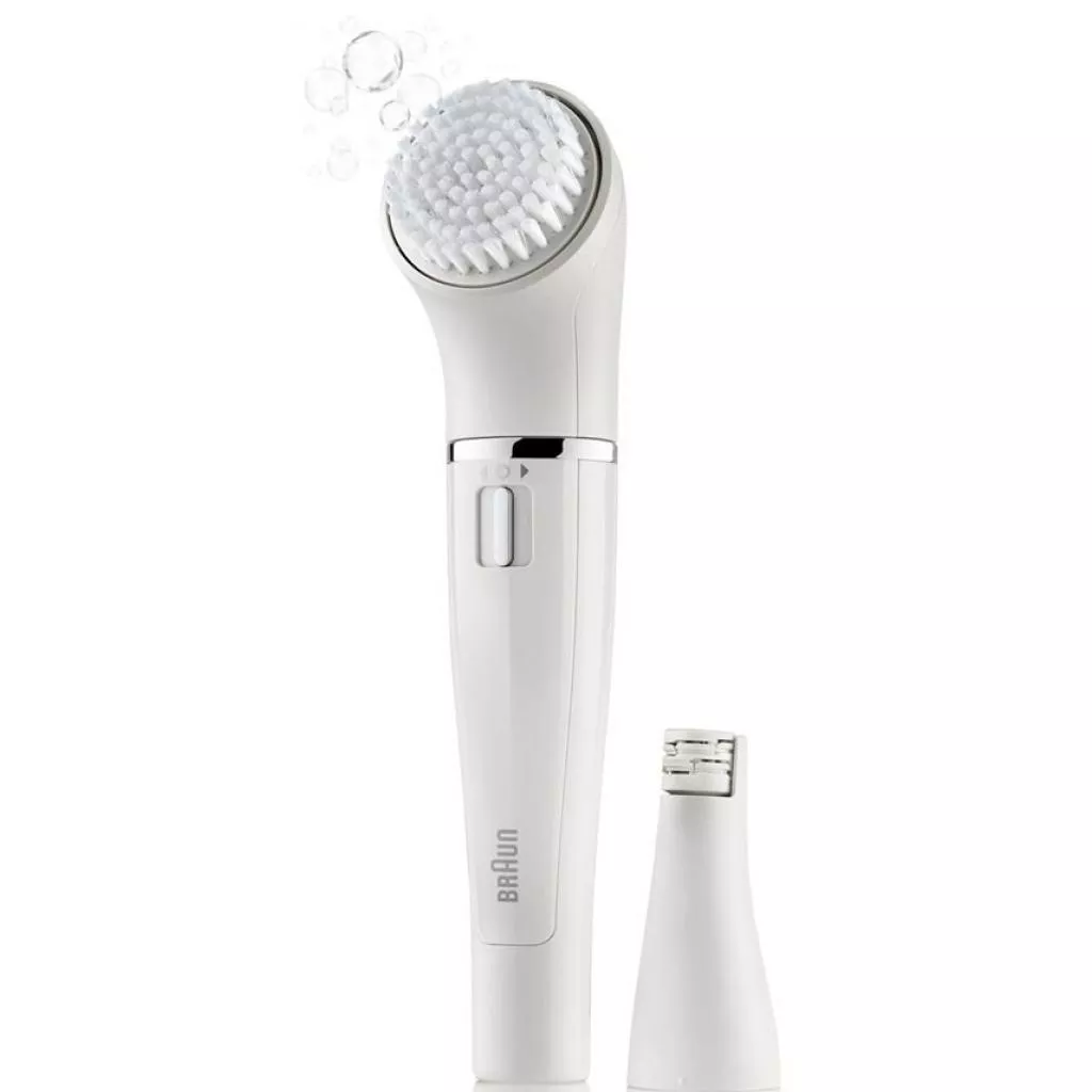 В комплекте эпилятор имеет специальную щеточку, которая мягкими движениями очищает кожу от макияжа и загрязнений, при этом отшелушивая омертвевшие клетки. Эффект от чистки с помощью Braun Face 810 в шесть раз выше, чем при обычном умывании. Щетинки выполняют до сотни микровибраций в минуту, тщательно обрабатывая каждый участочек.