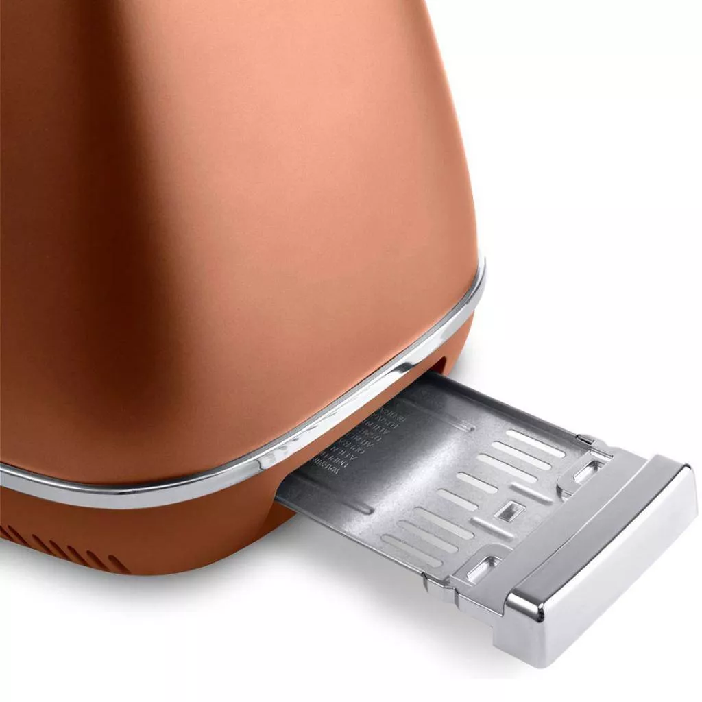 Тостер DeLonghi CTI 2103 покорит вас своим утонченным и оригинальным дизайном, сделает вашу кухню по-настоящему особенной и уникальной. Модель принадлежит дизайнерской коллекции техники для завтрака Distinta. Итальянский производитель позаботился о том, чтобы ваш день всегда начинался только с хорошего настроения, ведь каждый прибор Distinta – это стильное дополнение к интерьеру дома. Корпус тостера бронзового цвета дополняют сверкающие хромированные детали. Теперь вы сможете получать истинное удовольствие от нежных хрустящих тостов каждое утро.