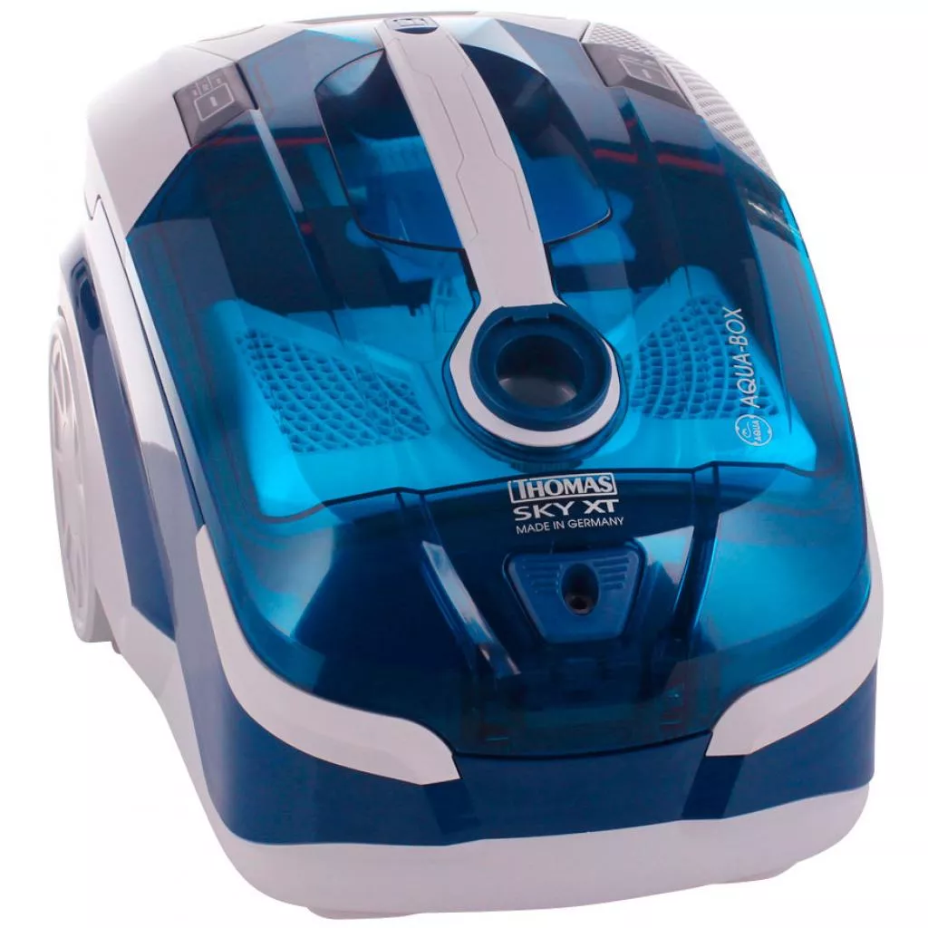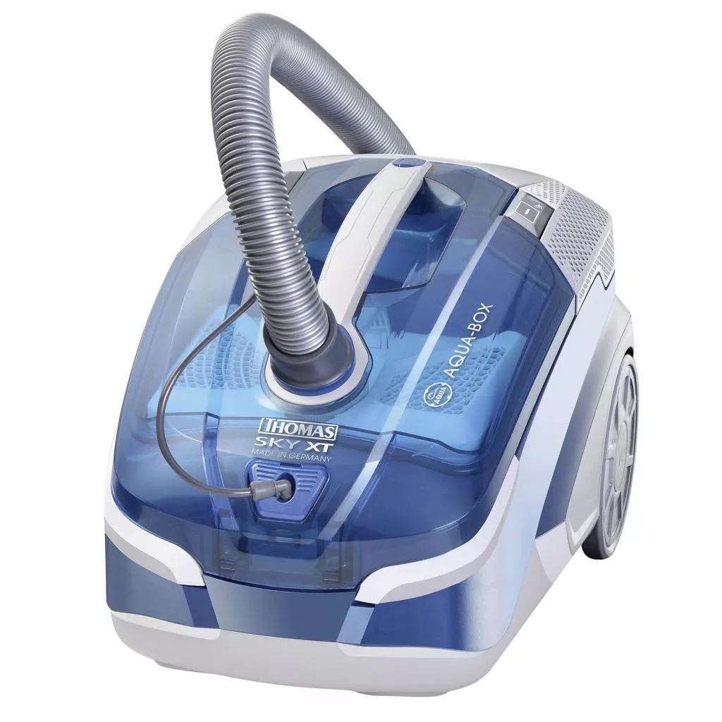 Грязная вода при этом всасывается в контейнер объемом 2 литра. Так же при необходимости эта модель способна за секунды собрать пролитую воду с пола. В комплекте имеется 3 насадки для удобной очистки различных поверхностей. В пылесосе установлен долговечный MICRO-фильтр выходящего воздуха, который эффективно задерживает мельчайшие частички пыли, не давая ей проникать в помещение. После уборки THOMAS SKY XT