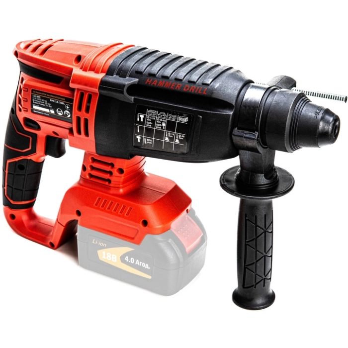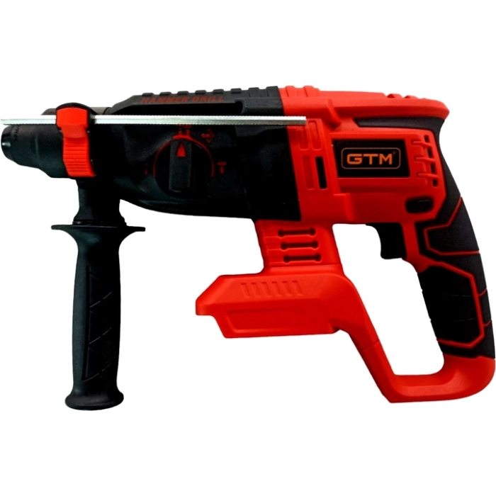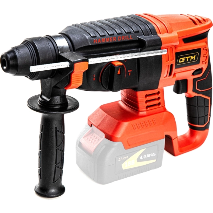 GTM RHC18/26BL - бесщеточный перфоратор профессионального класса с питанием от Li-Ion аккумуляторов напряжением 18 В. В перфоратор и установлен патрон SDS+ для буров. В данной модели присутствуют 4 режима работы: сверление/сверление с ударом/долбление/поворот пики.