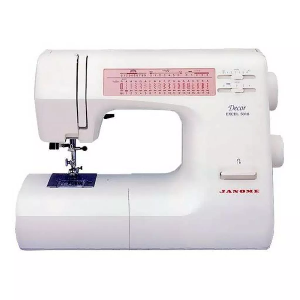 Встроенный автоматический нитевдеватель, дает возможность быстро продеть нитку в ушко иглы. Оснащена Janome Decor Excel 5018 горизонтально вращающимя челноком. Количество строчек 18, а максимальная их длина 6,5 мм. Машина может выполнять разнообразные строчки необходимые в пошиве одежды (оверлочные, для работы с трикотажем). Для бельевой петли есть специальный автоматический режим. Прибор работает и с тонкими и с толстыми тканями (трикотаж, проблемные и тянущиеся ткани). Укомплектована модель также регулятором давления лапки на ткань, нитеобрезателем и регулятором баланса петли.